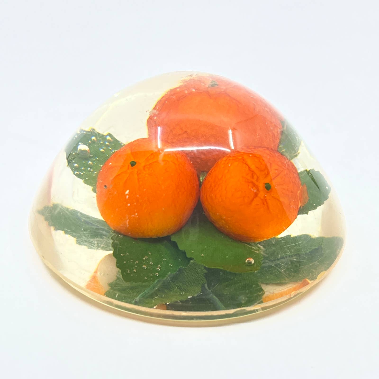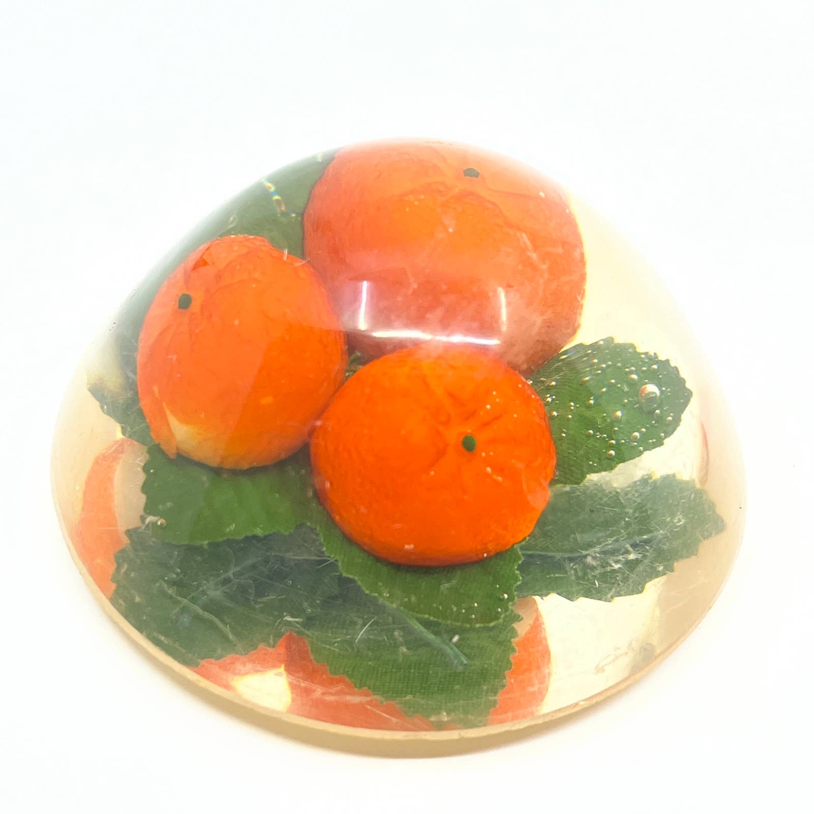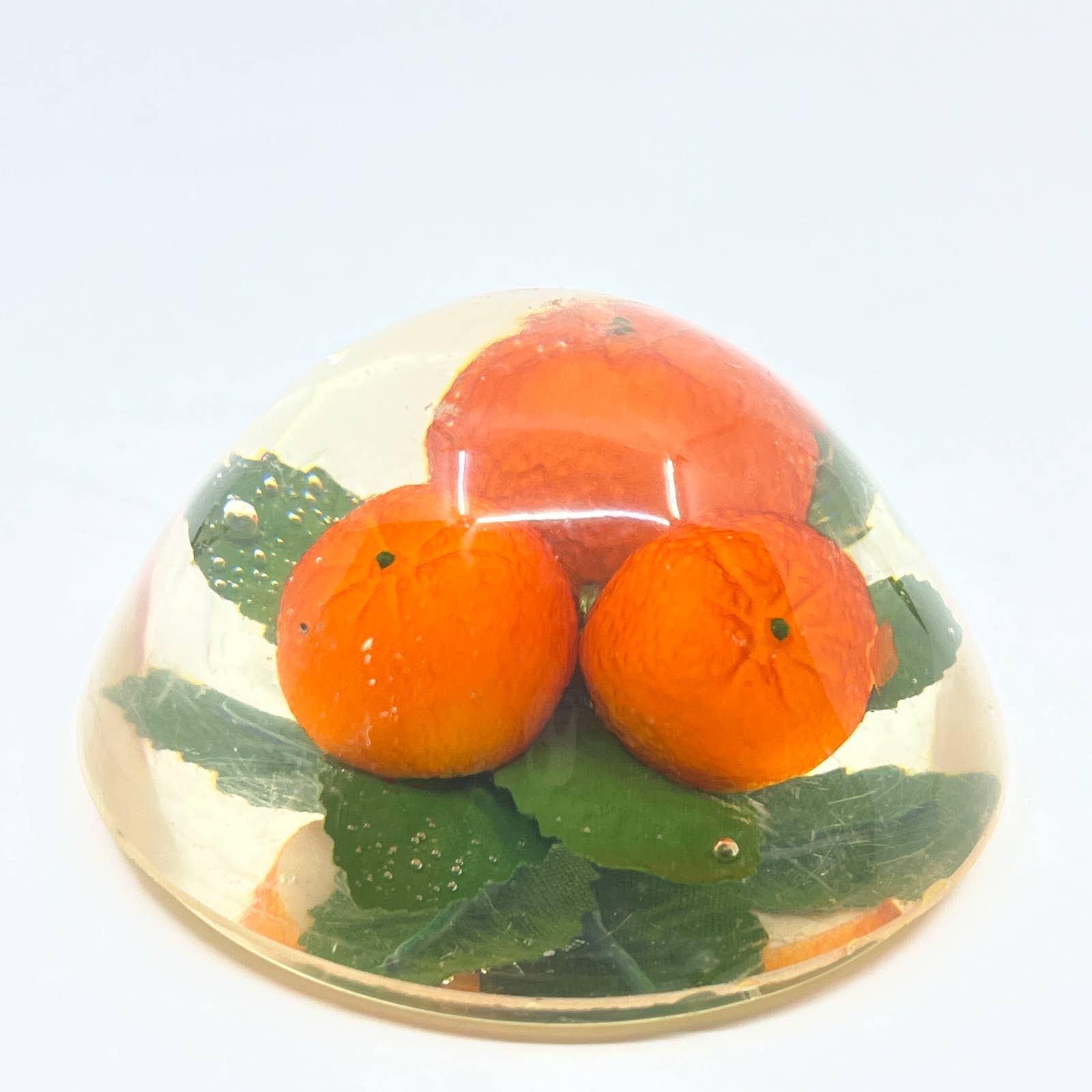 Vintage Kitsch Clear Lucite Mini Oranges Paperweight Round TF5