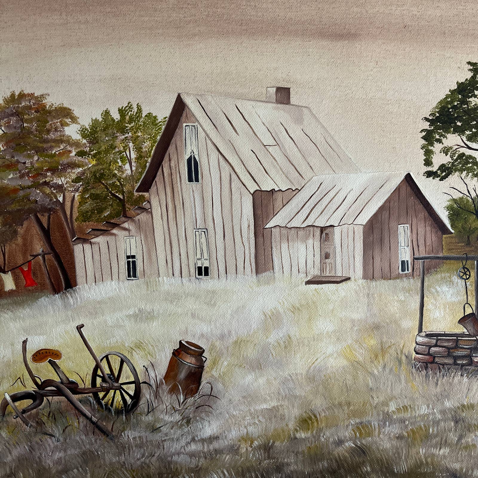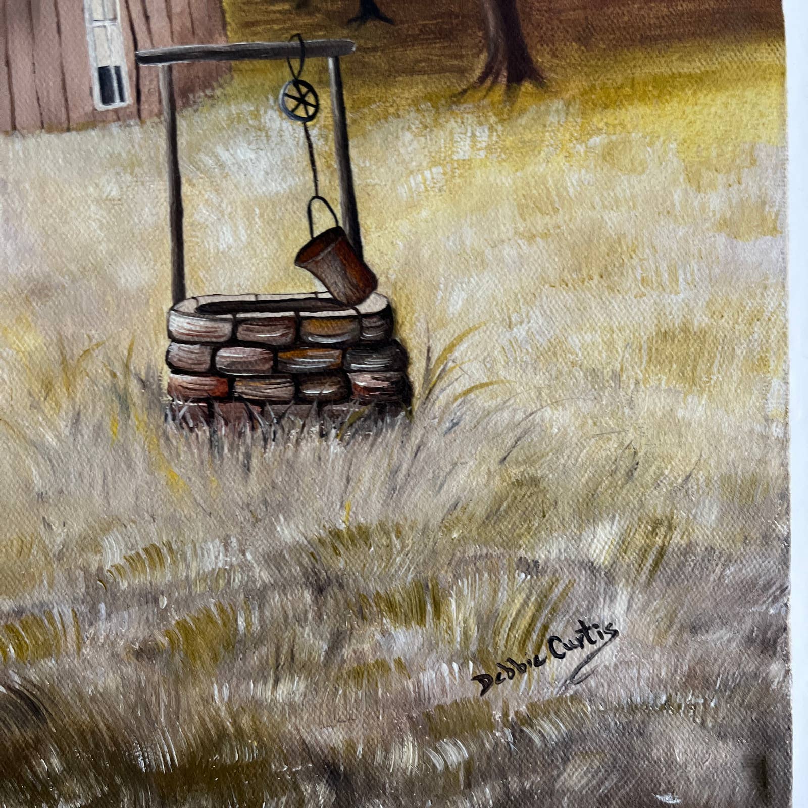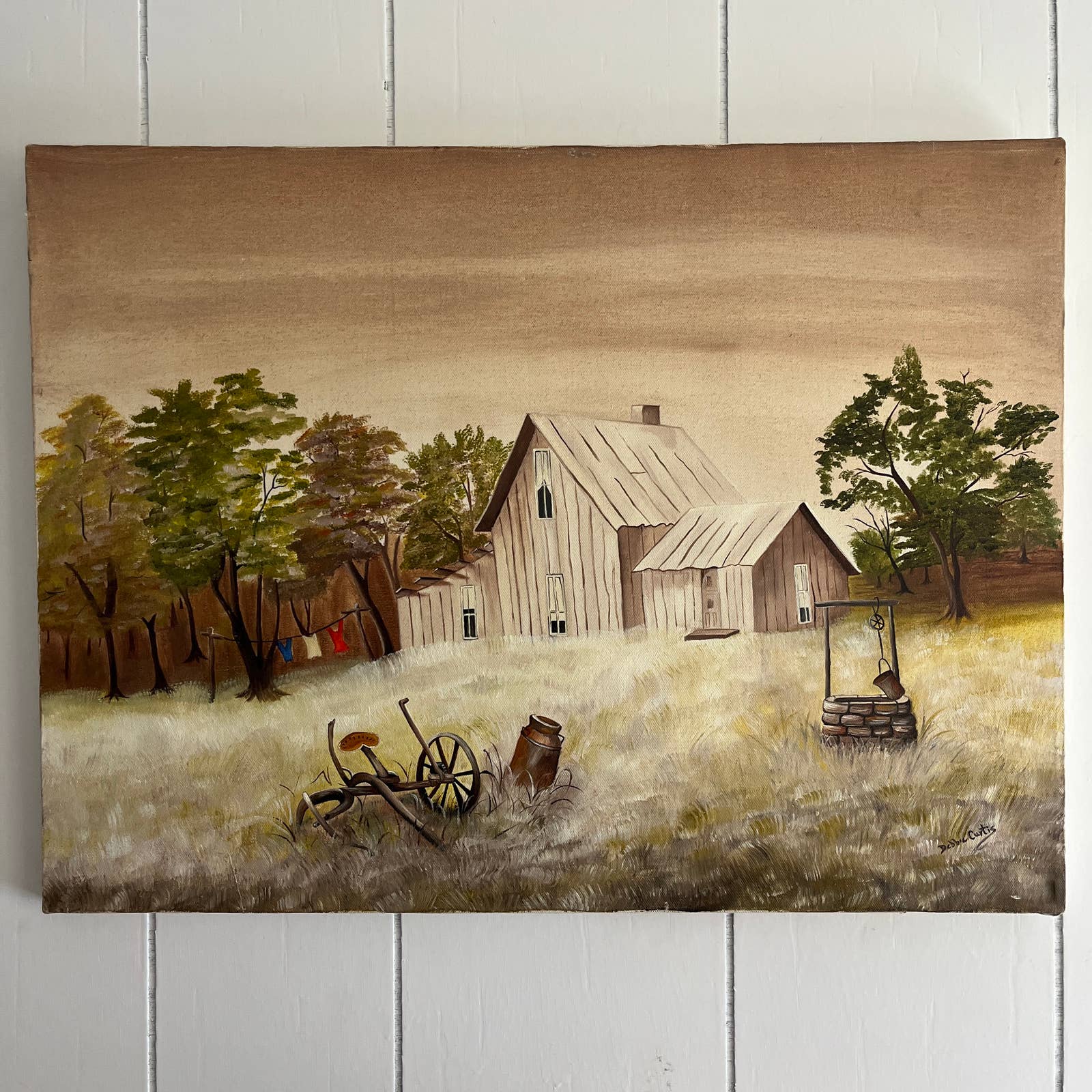 Vintage Kitsch Original Art Oil Painting Farmhouse Signed Debbie Curtis 18x24"