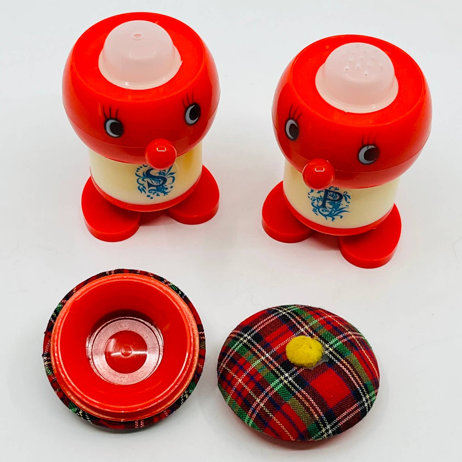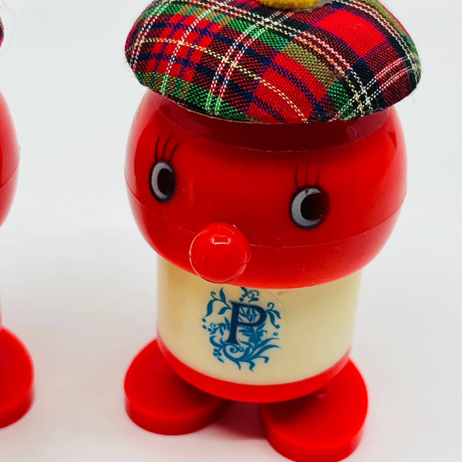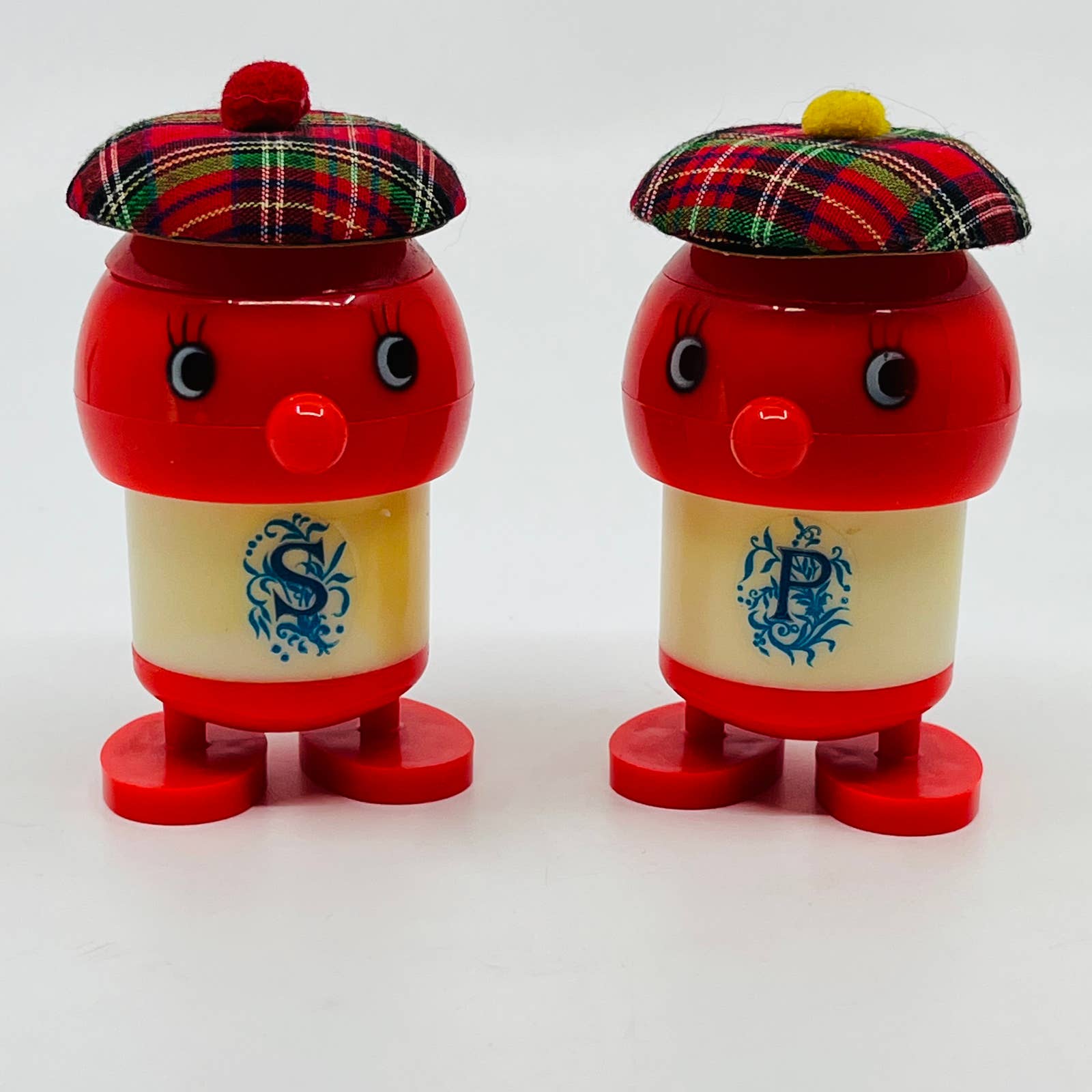 Vintage Kitschy Scottish Tartan Hat Tomato Celluloid Salt & Pepper Shakers TD2
