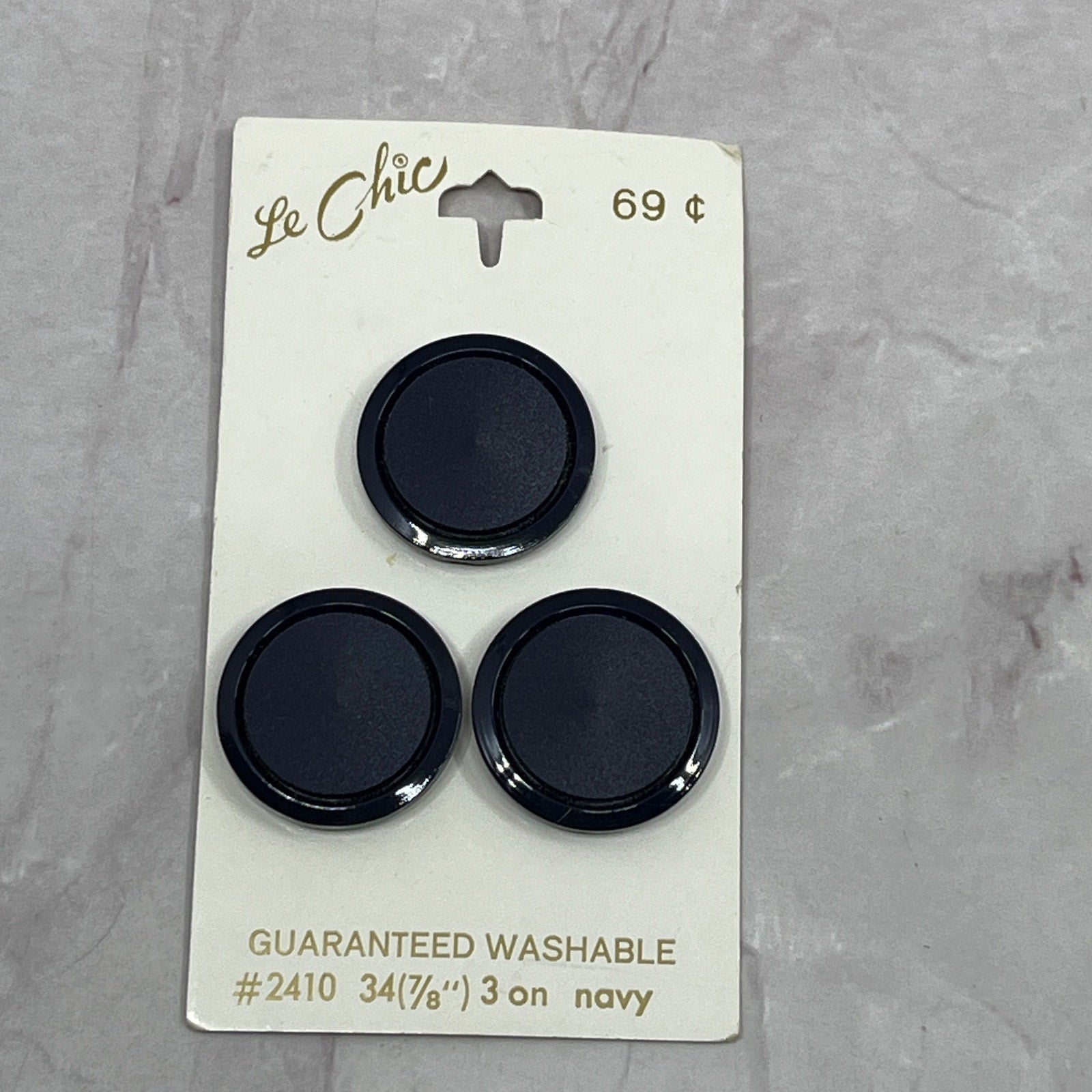 Vintage Lot of 3 Le Chic Navy Blue Size 34 7/8 Buttons #2410 SE2