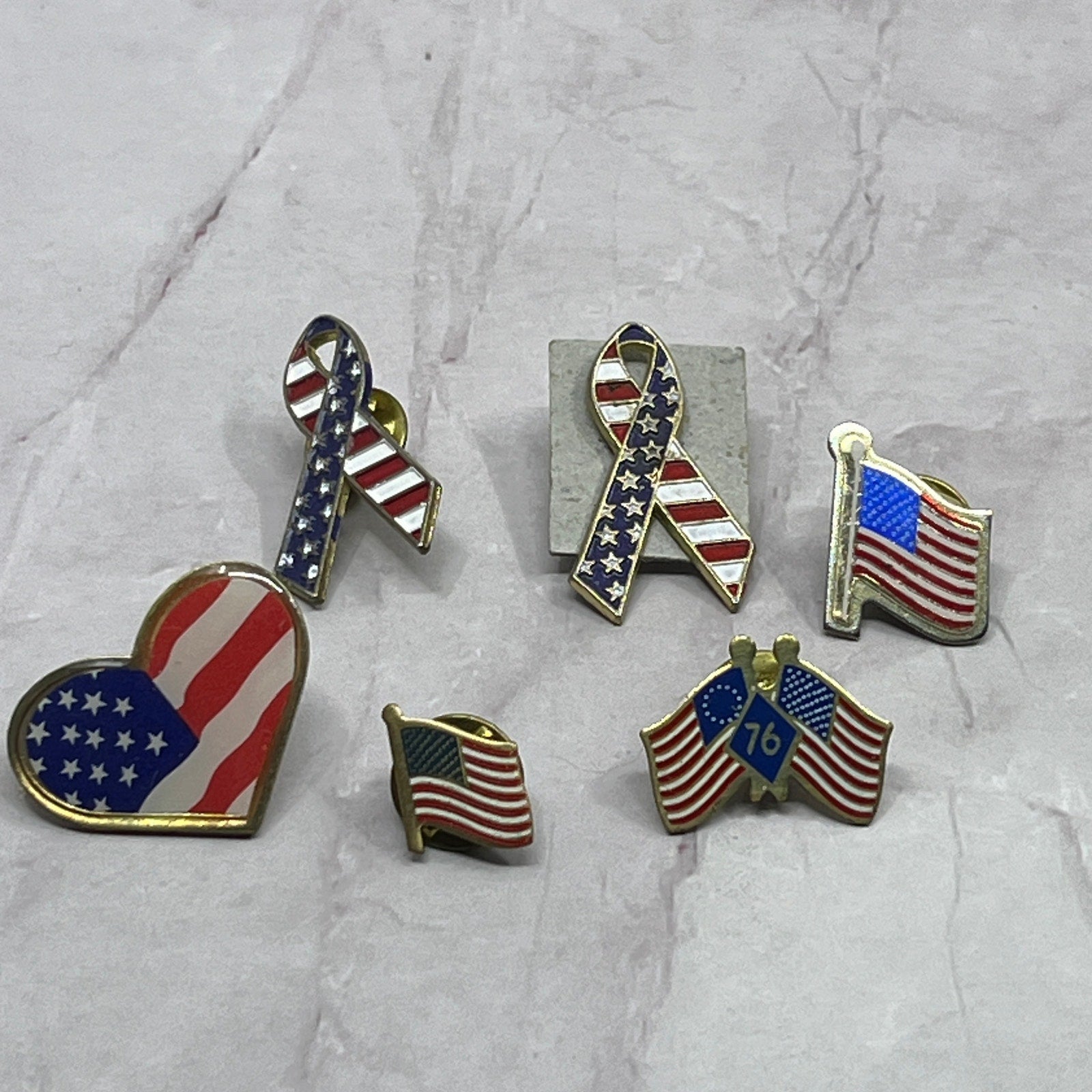 Vintage Lot of 6 Patriotic American Flag Lapel Pin Pinback Buttons SB7