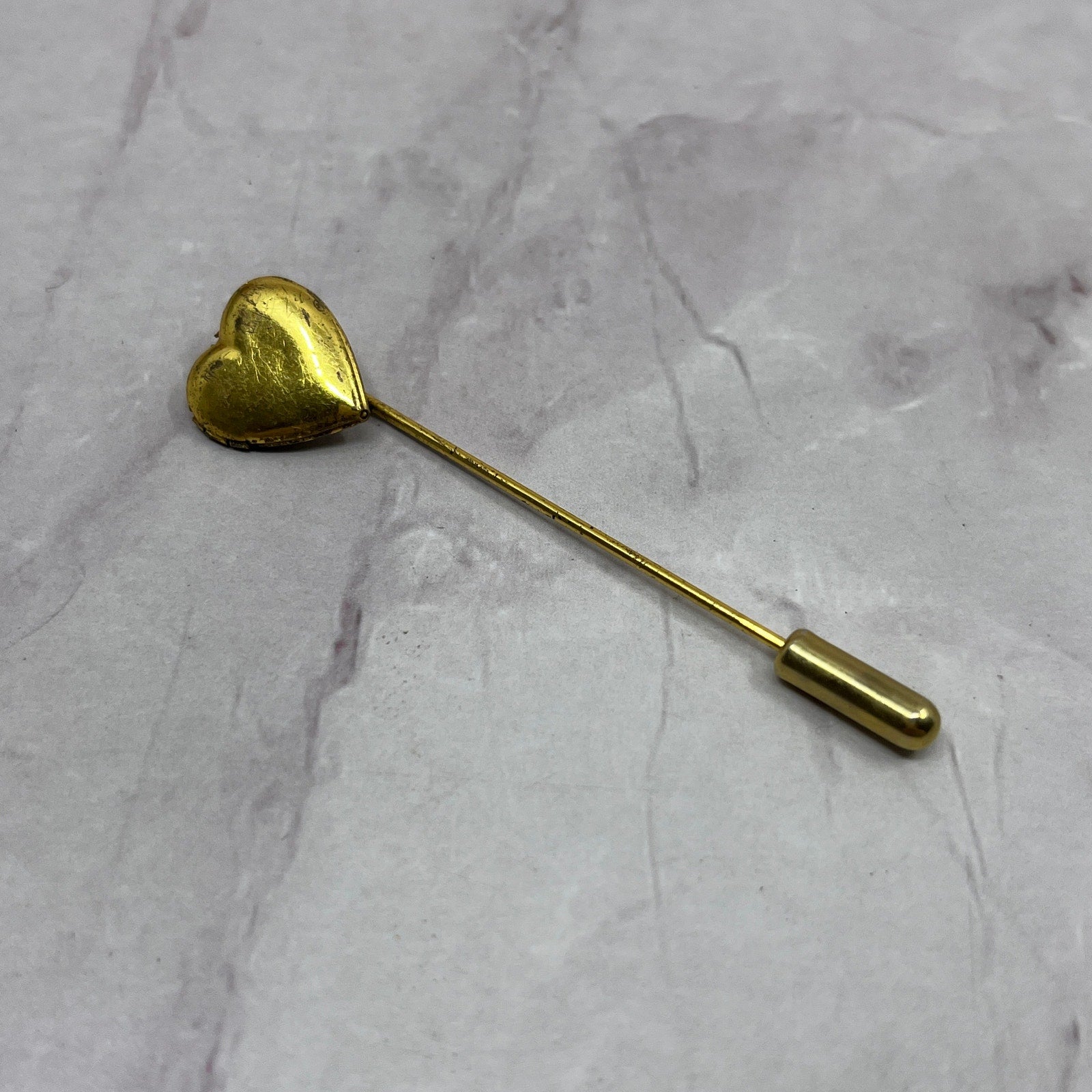 Vintage MCM Mod Heart Gold Tone Stick Pin Hat Pin SB7