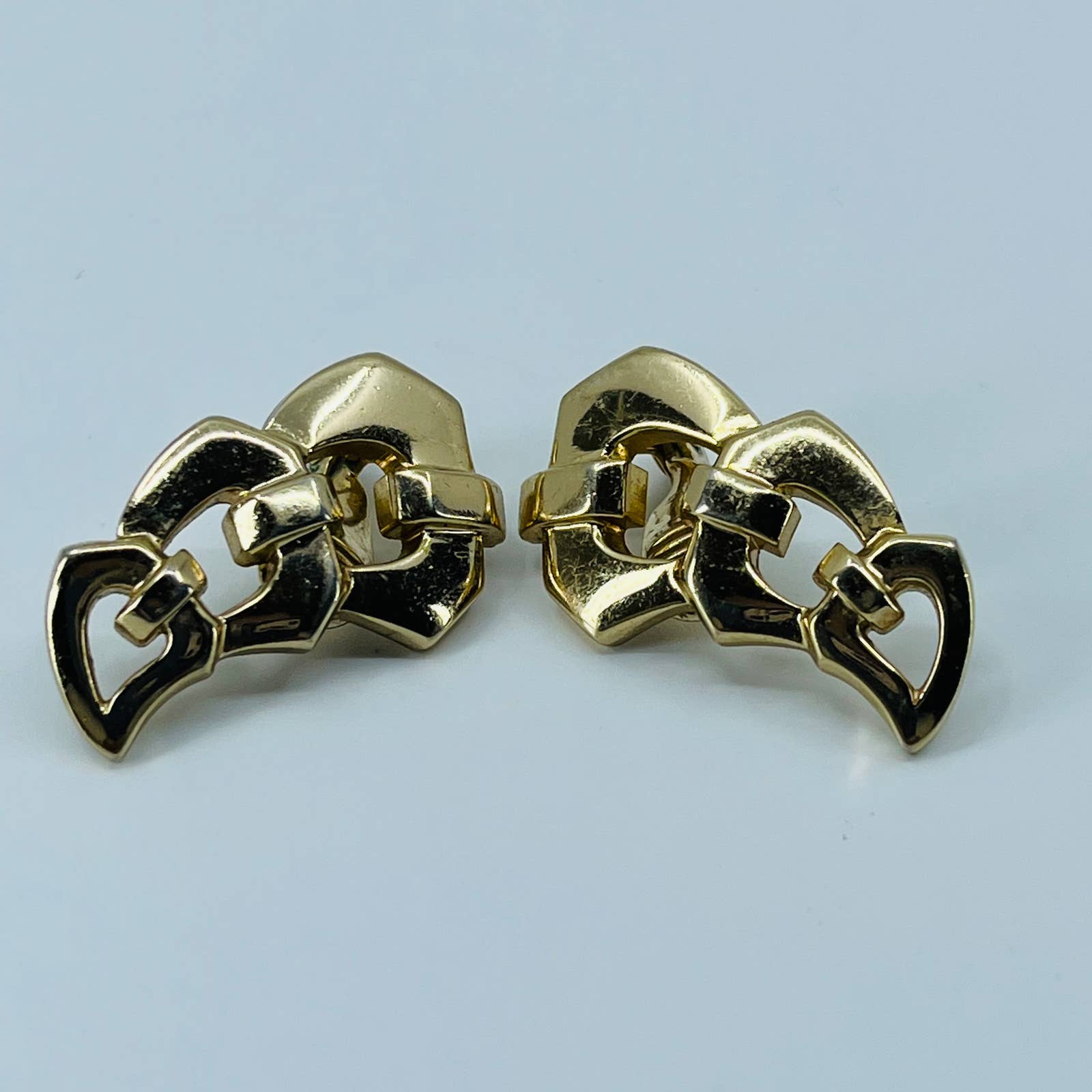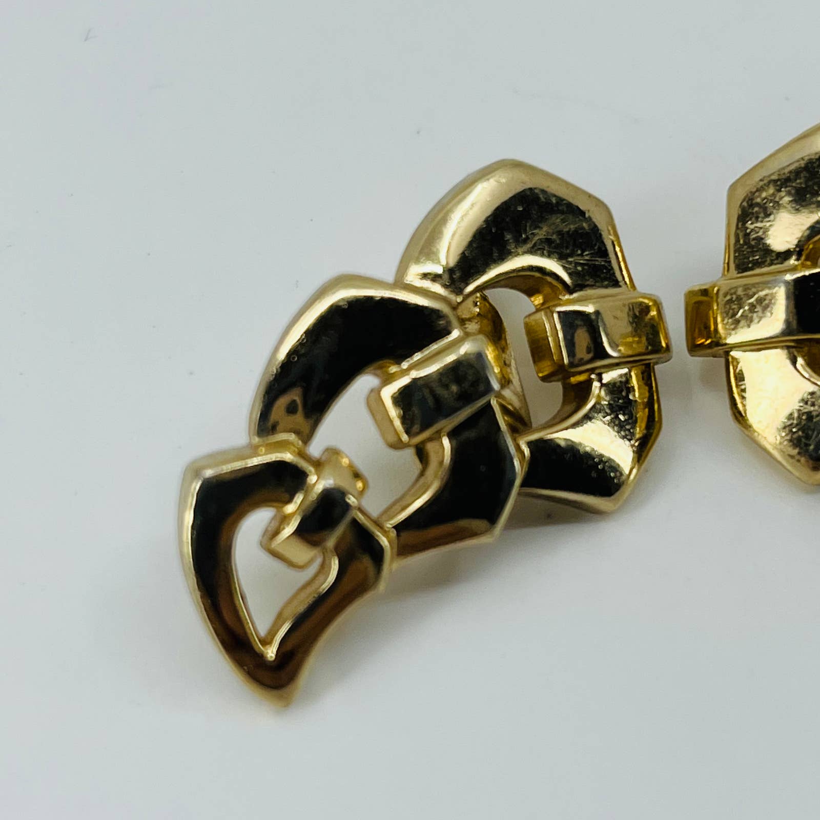 Vintage MCM Mod Monet Gold Tone Geometric Clip Earrings SB2
