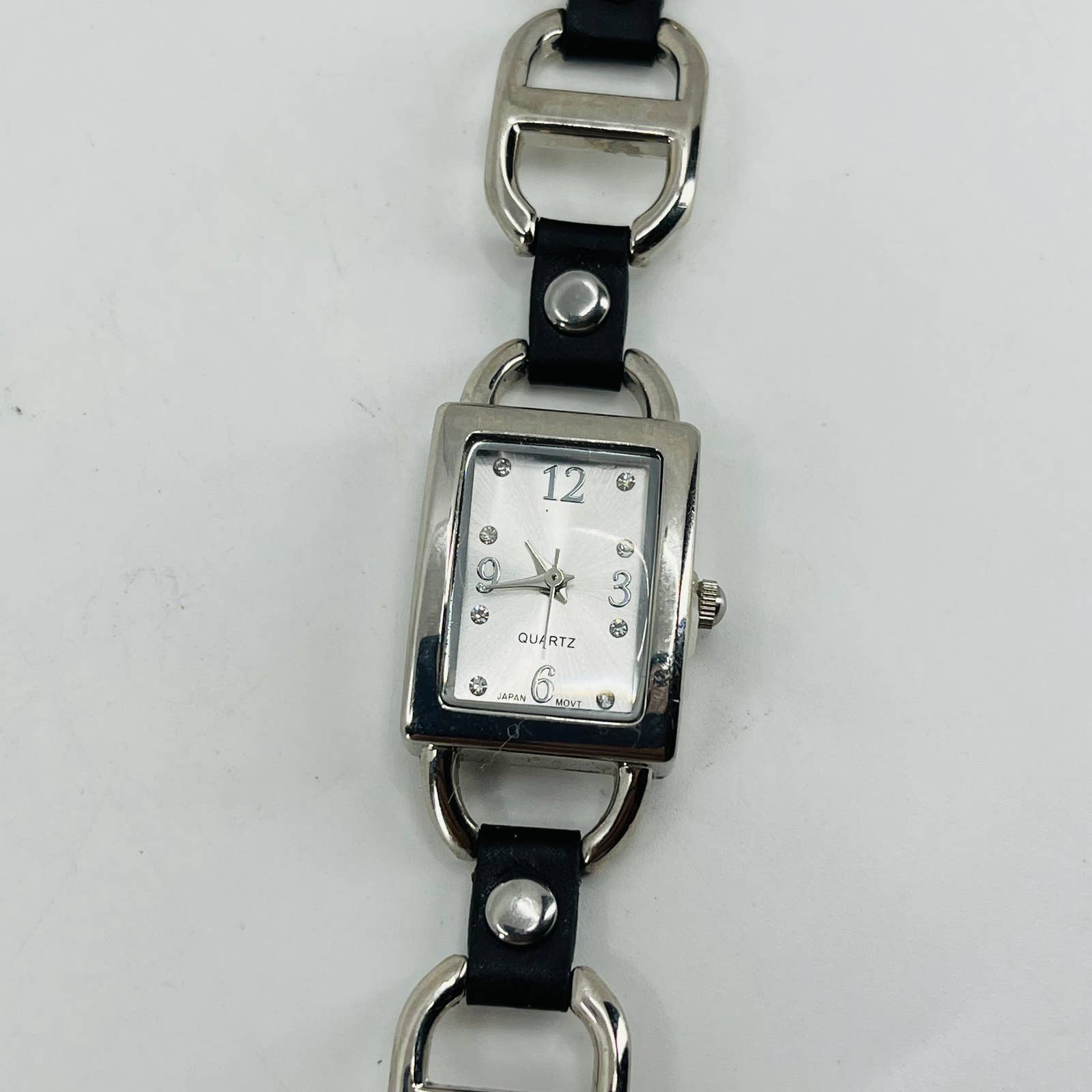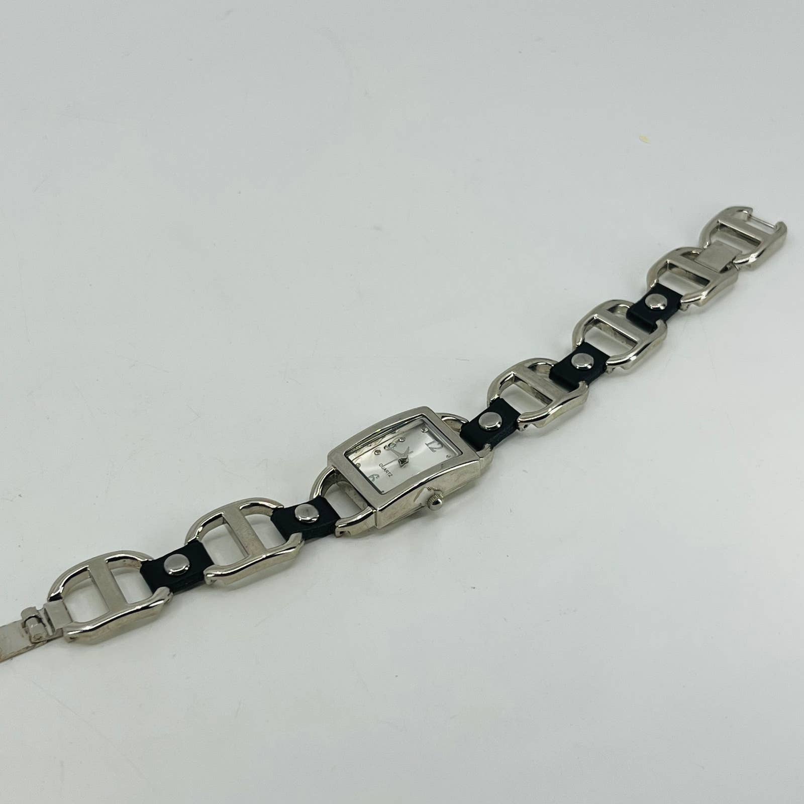 Vintage Modernist Metal & Leather Watch Metal Clasp Band SA9