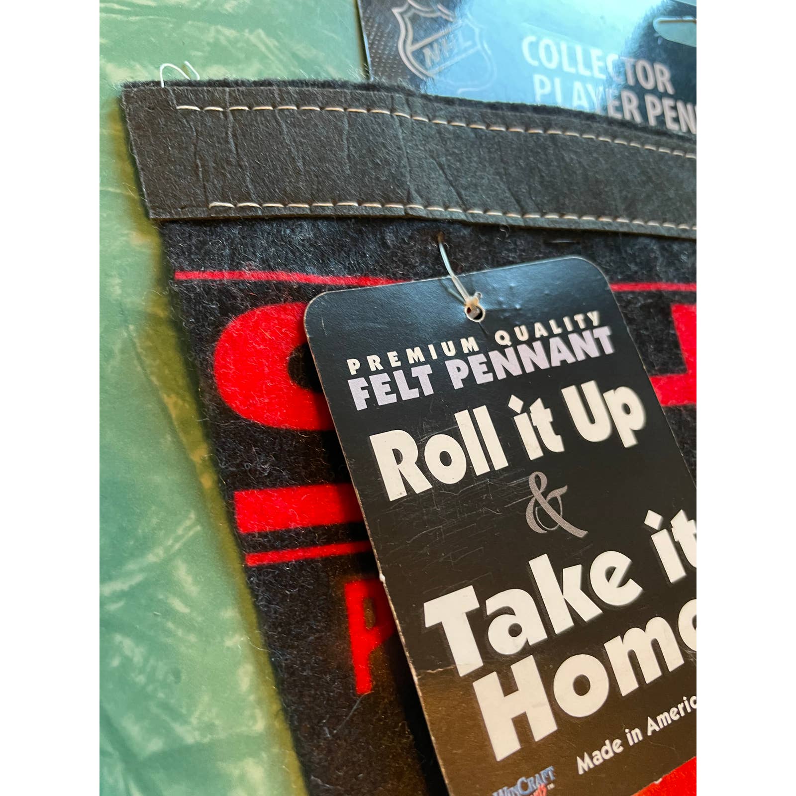 Souvenir pennant of Patrick Sharp with tags still attached. Good condition with a few wrinkles (can be steamed or ironed easily) and one spot (can be cleaned most likely, see photos). Limited edition (254 of 2008).