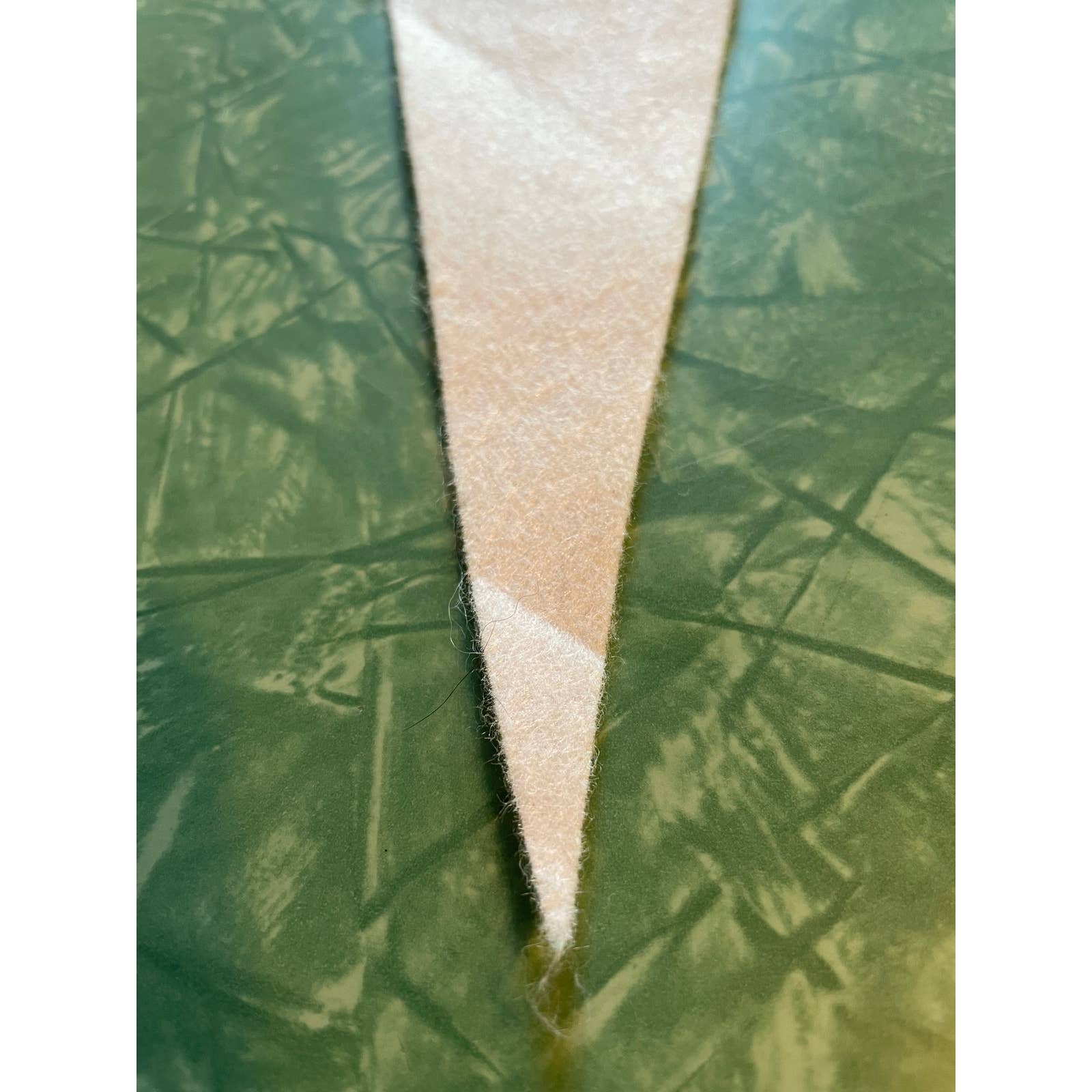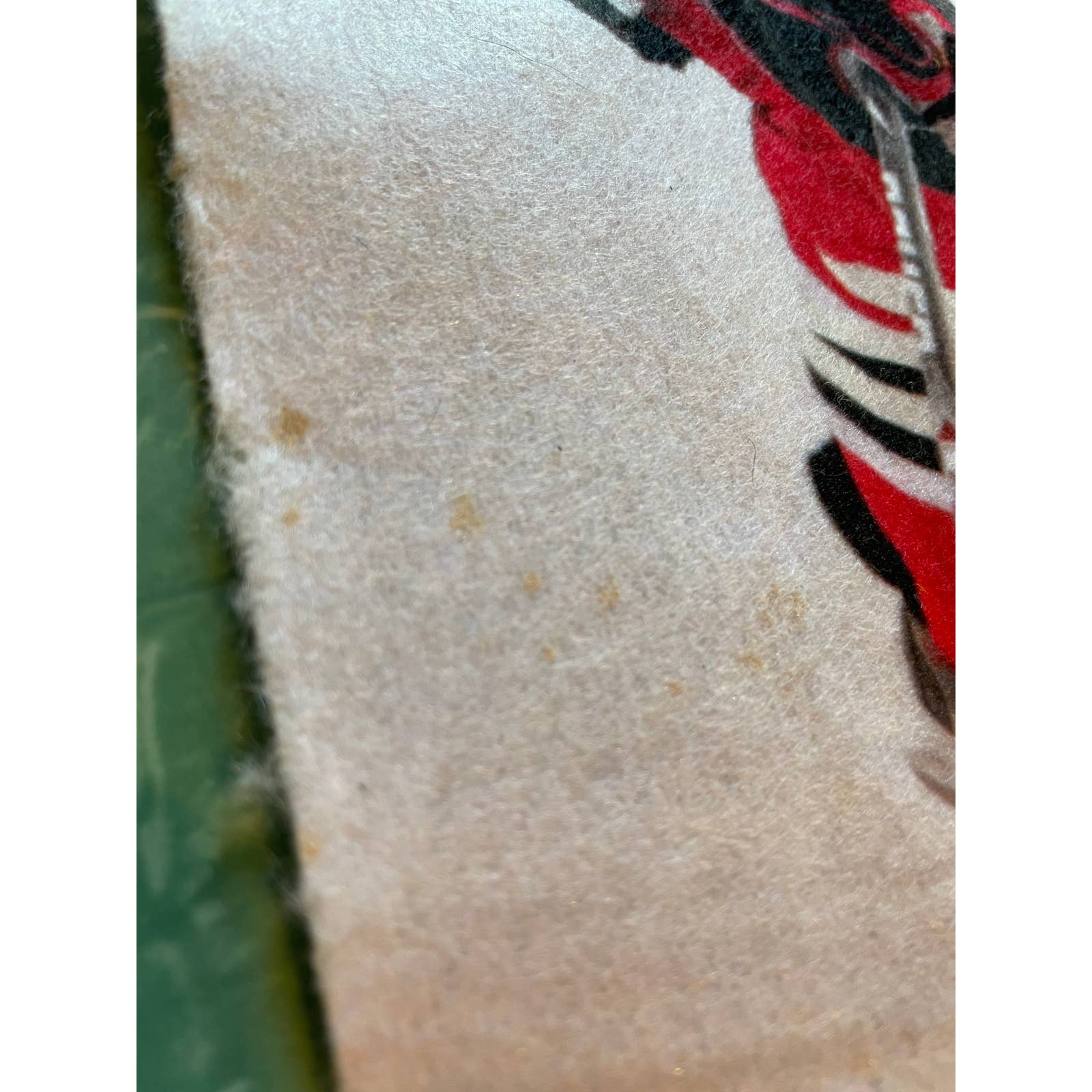 Tags still attached, there is a part of the felt that is missing (see photos) and a some light spots that could probably be cleaned (see photos) but overall good condition.