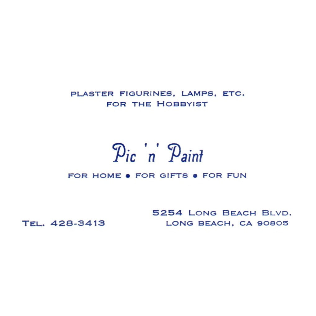 Vintage Pic n Paint Plaster Figurnines Lamps Long Beach CA Business Card SF3-B1