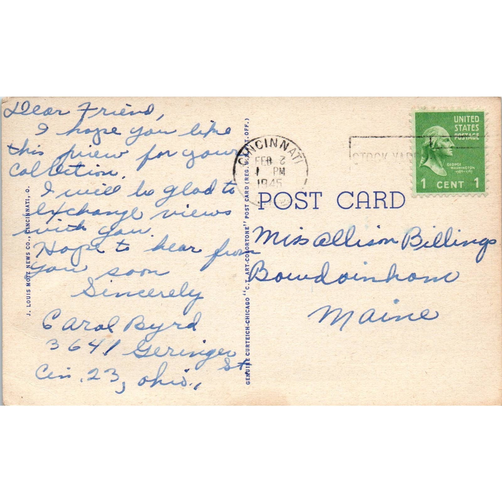Vintage Postcard A Message From Cincinnati Ohio Queen City of the West TD9