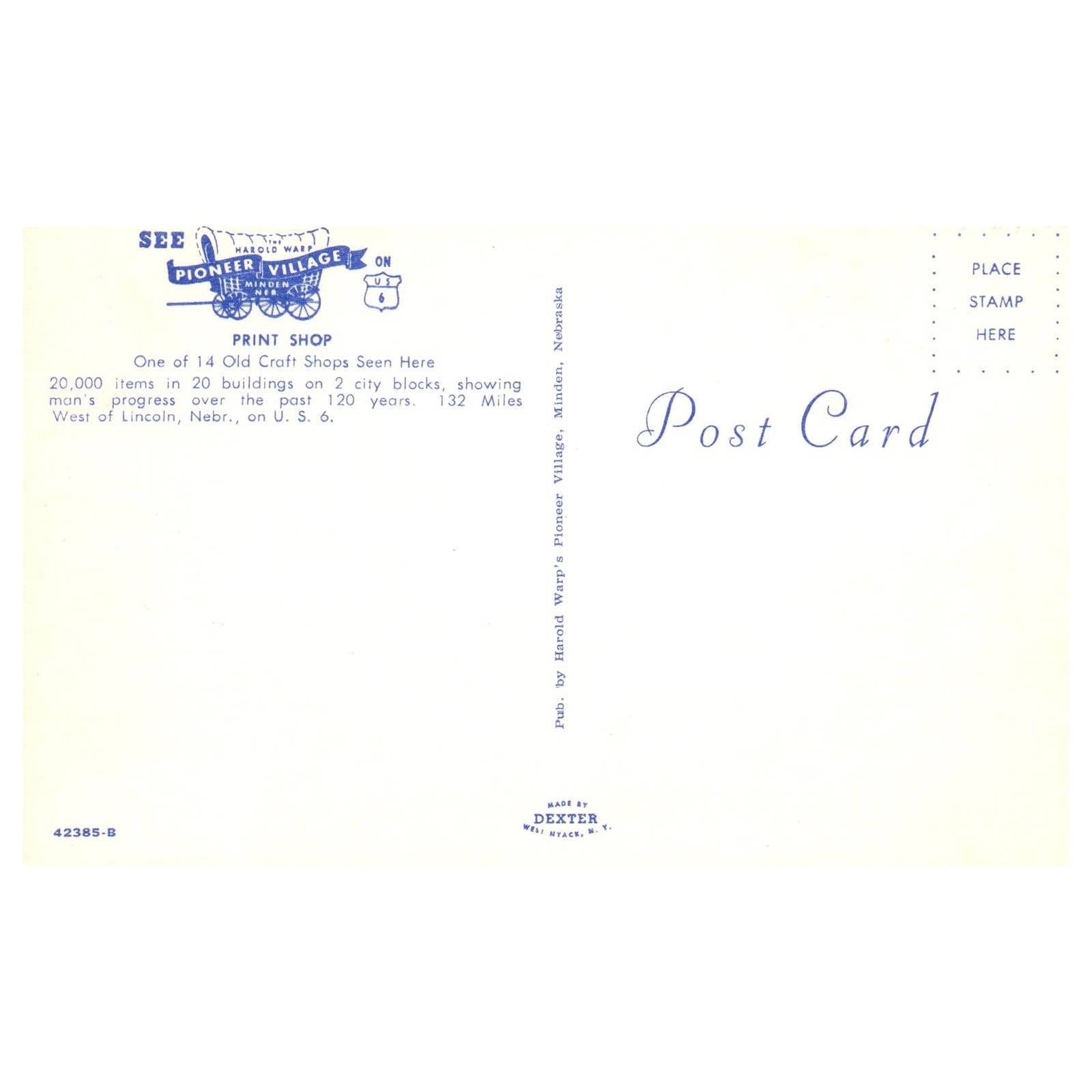 Vintage Postcard - Acme Print Shop Pioneer Village Lincoln Nebraska TJ6-1