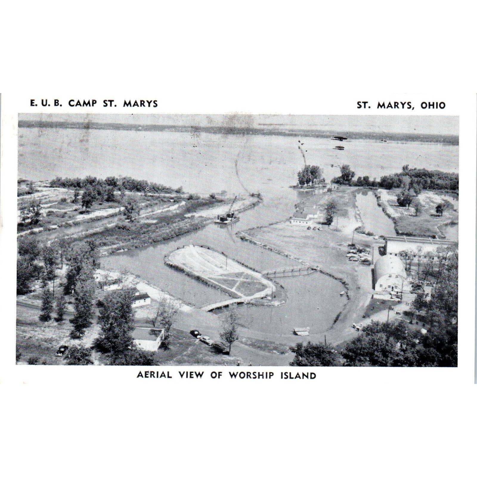 Vintage Postcard Aerial View of Worship Island E.U.B. Camp St. Marys OH TD8-O2