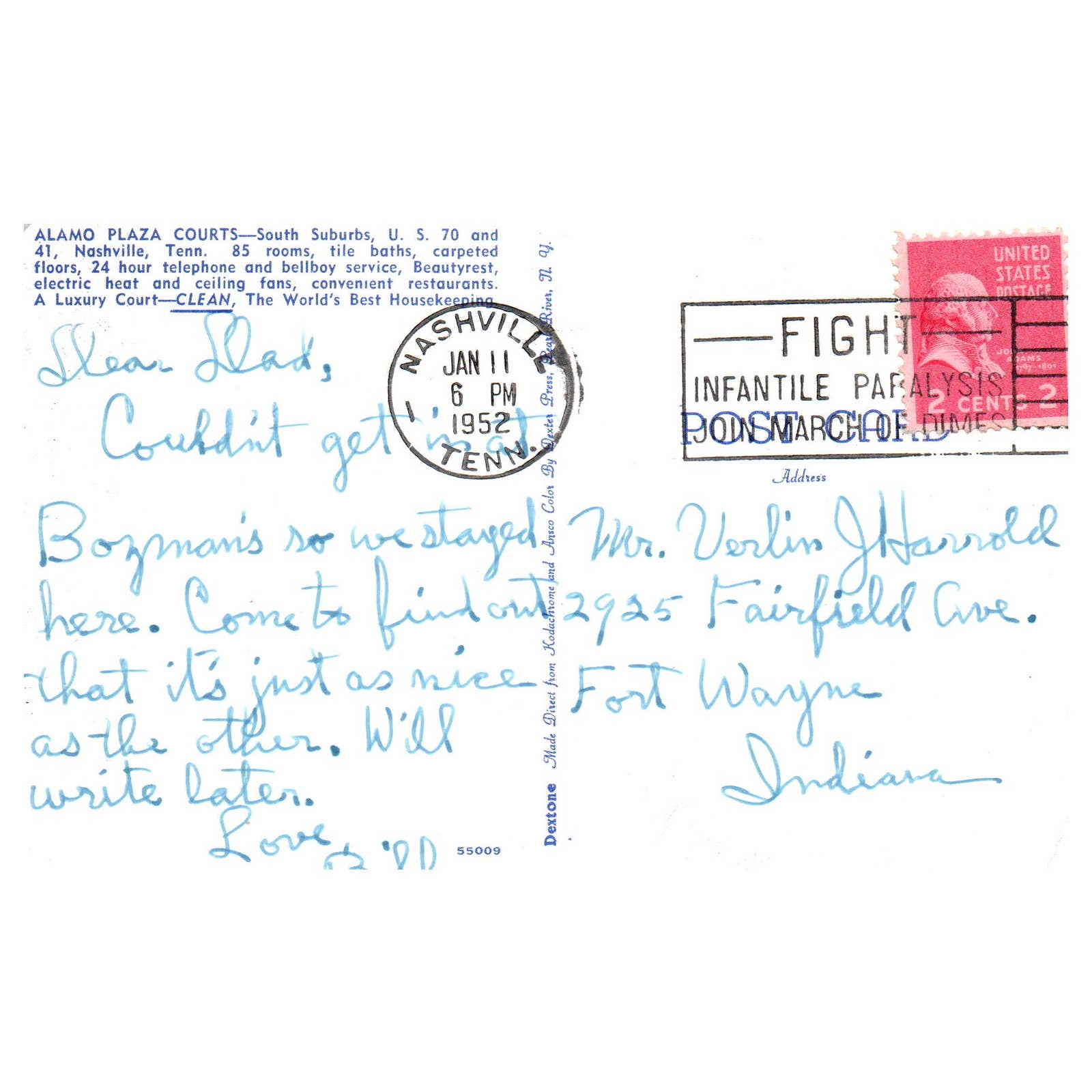 Vintage Postcard - Alamo Plaza Courts Nashville Tennessee 1952 AD9