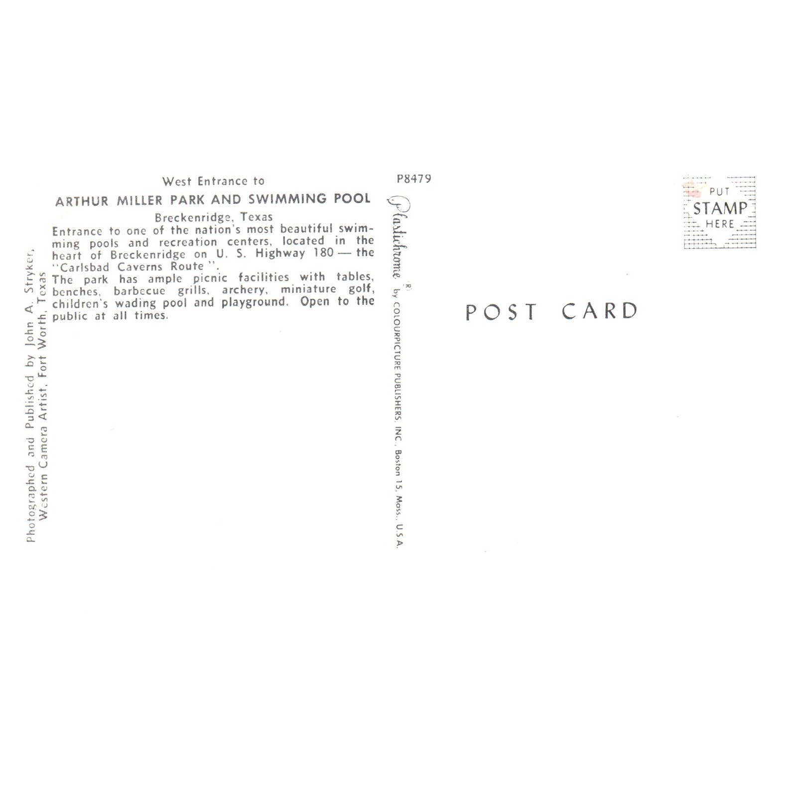 Vintage Postcard - Arthur Miller Park and Swimming Pool Breckenridge Texas AD9