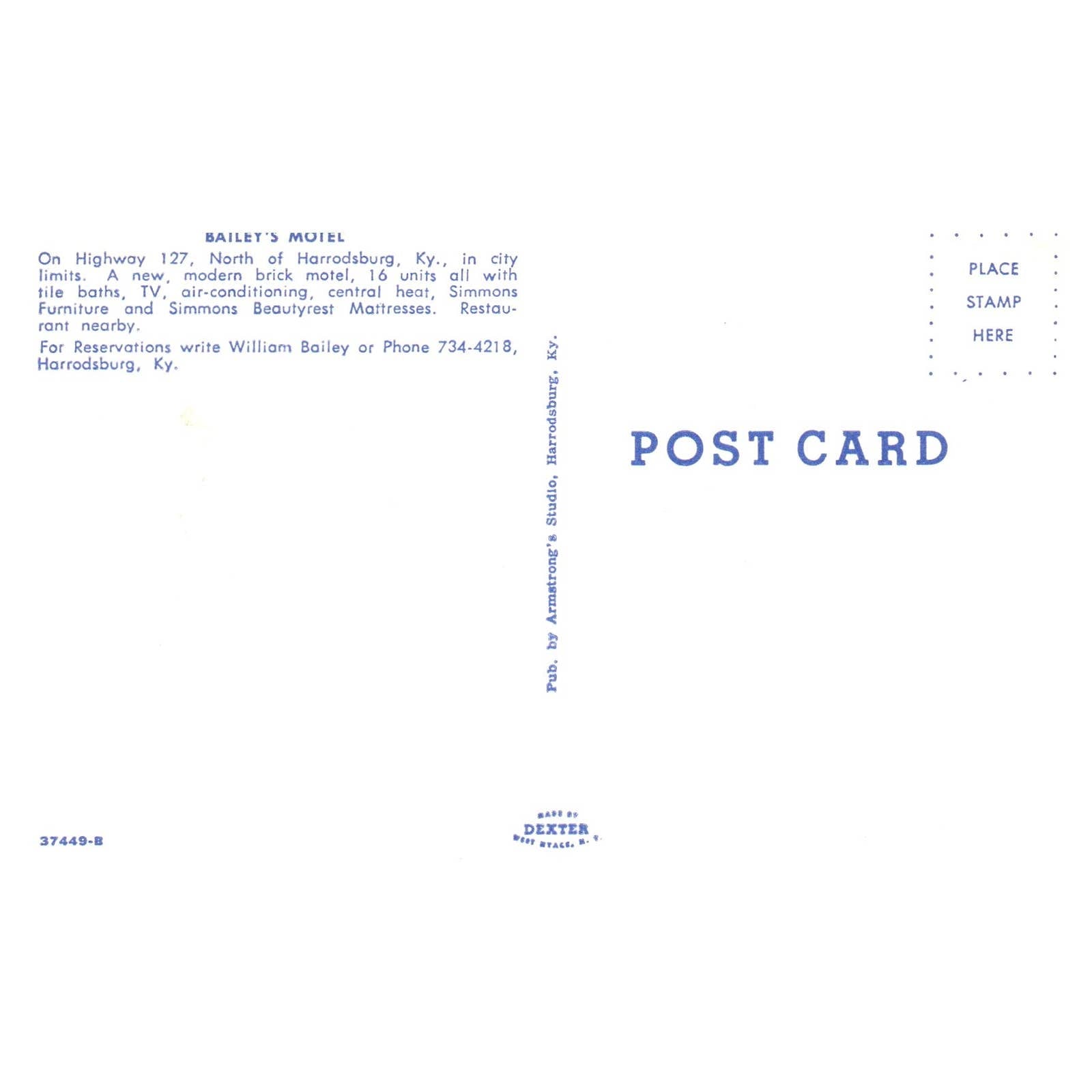 Vintage Postcard - Bailey's Motel AAA Harrodsburg Kentucky AD9