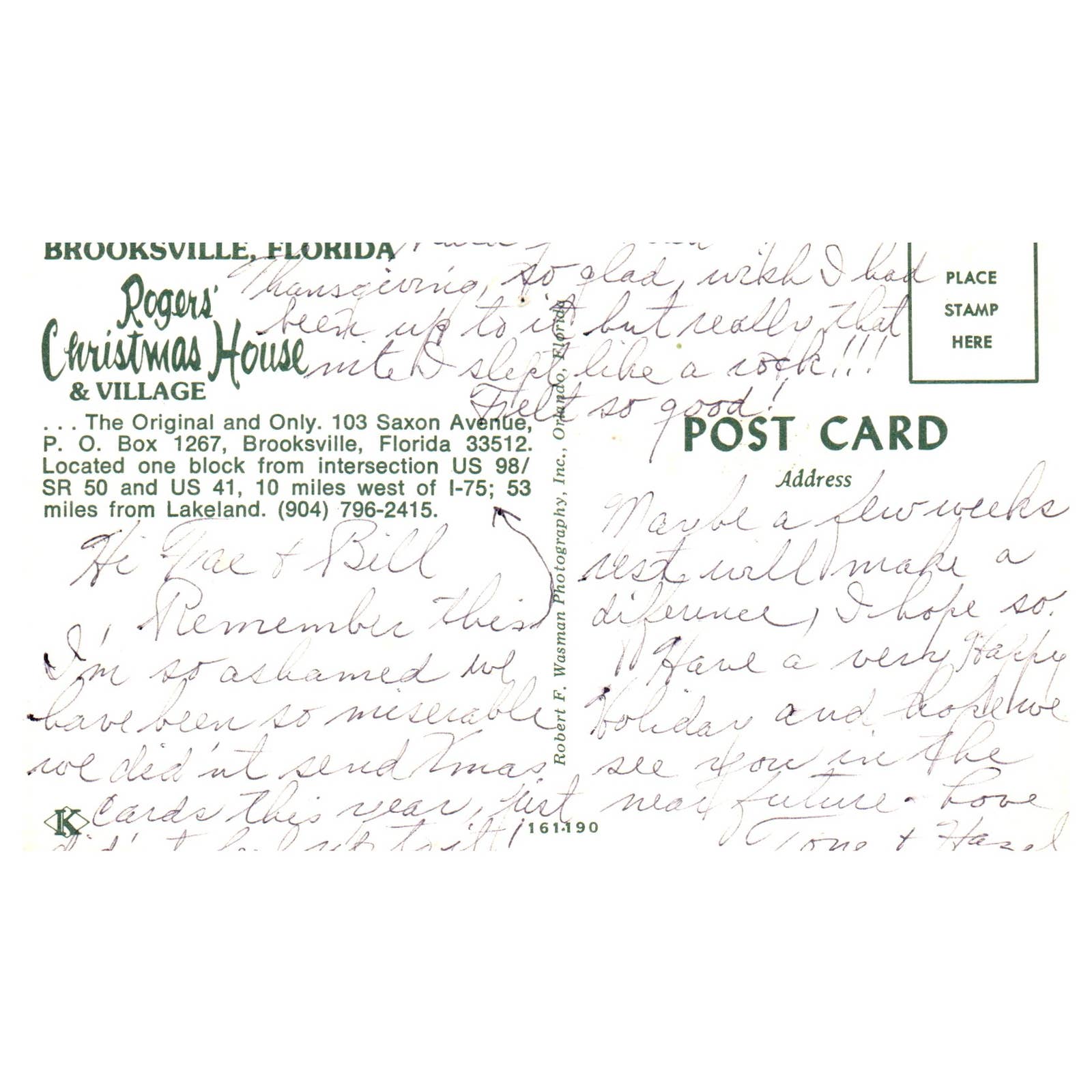 Vintage Postcard - Brooksville Florida Rogers' Christmas House and Village AD9