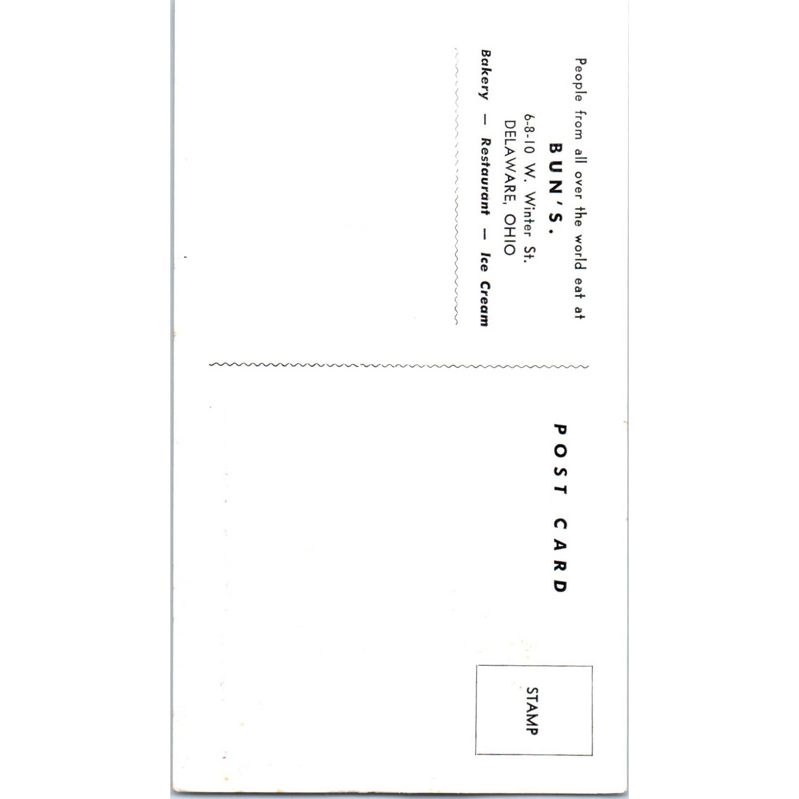 Vintage Postcard Bun's Restaurant Delaware Ohio TD9-2