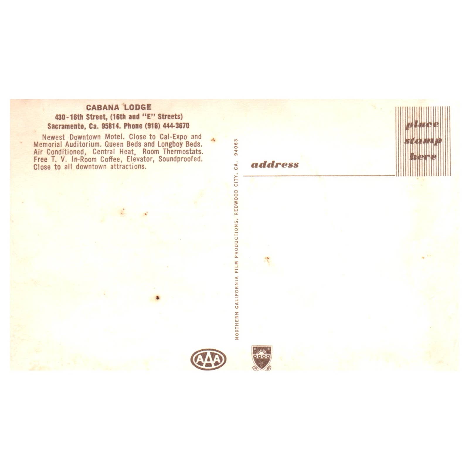Vintage Postcard - Cabana Lodge Sacramento California AD9