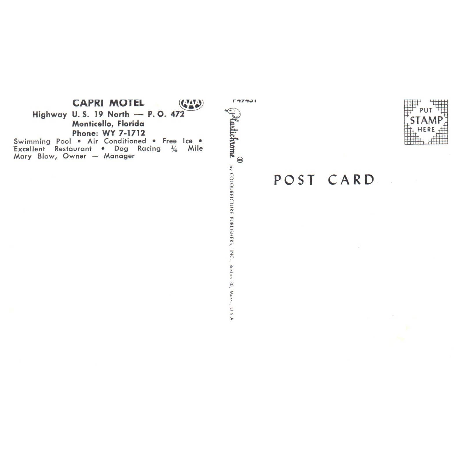 Vintage Postcard - Capri Motel - Monticello Florida AD9