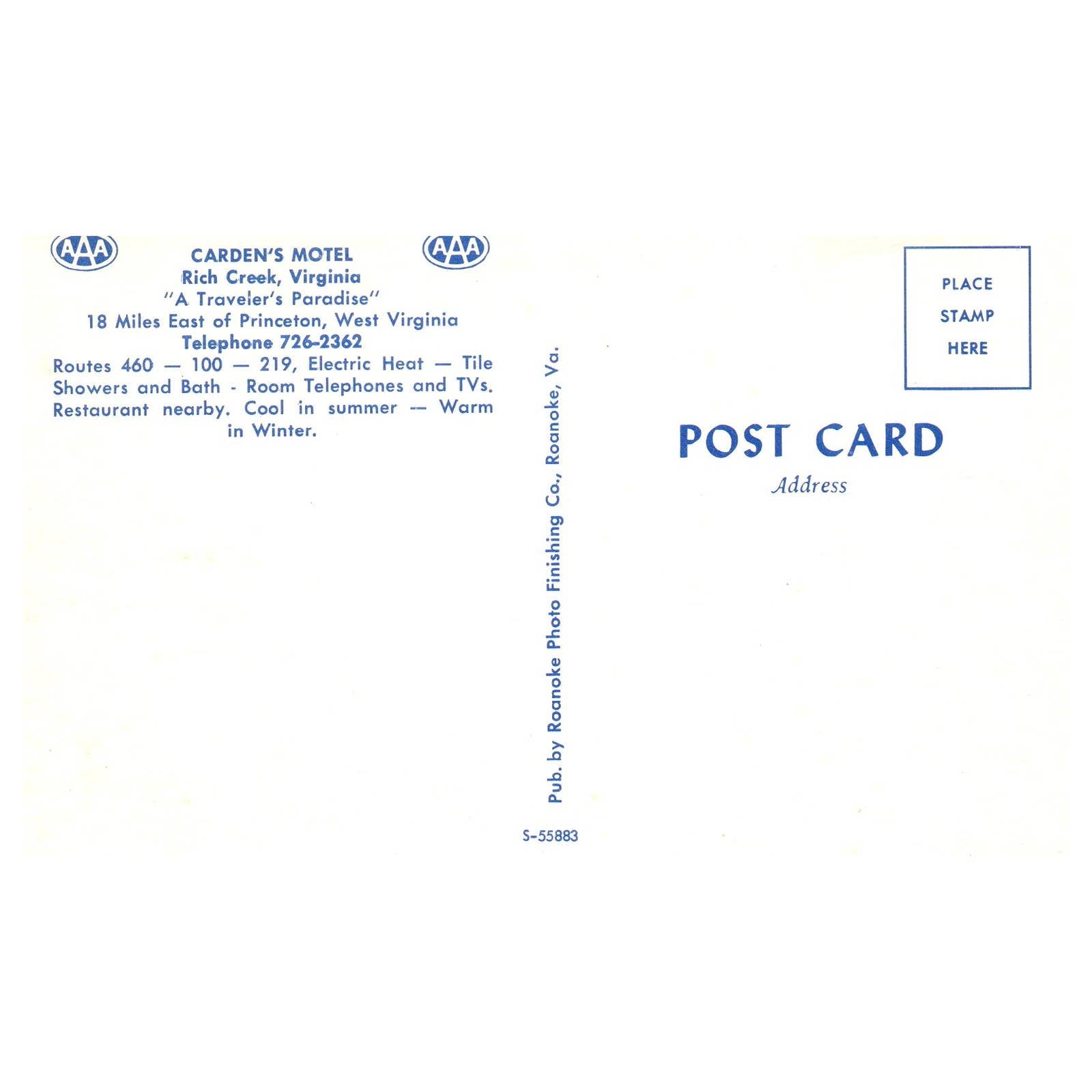 Vintage Postcard - Carden's Motel Rich Creek West Virginia AD9