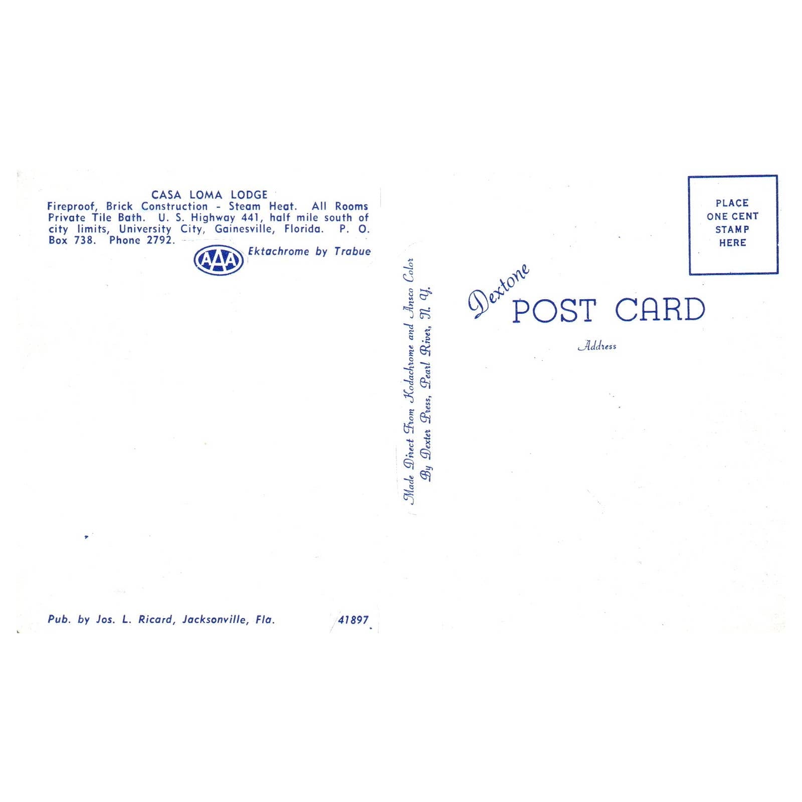 Vintage Postcard - Casa Loma Lodge AAA Gainesville Florida TJ7-1