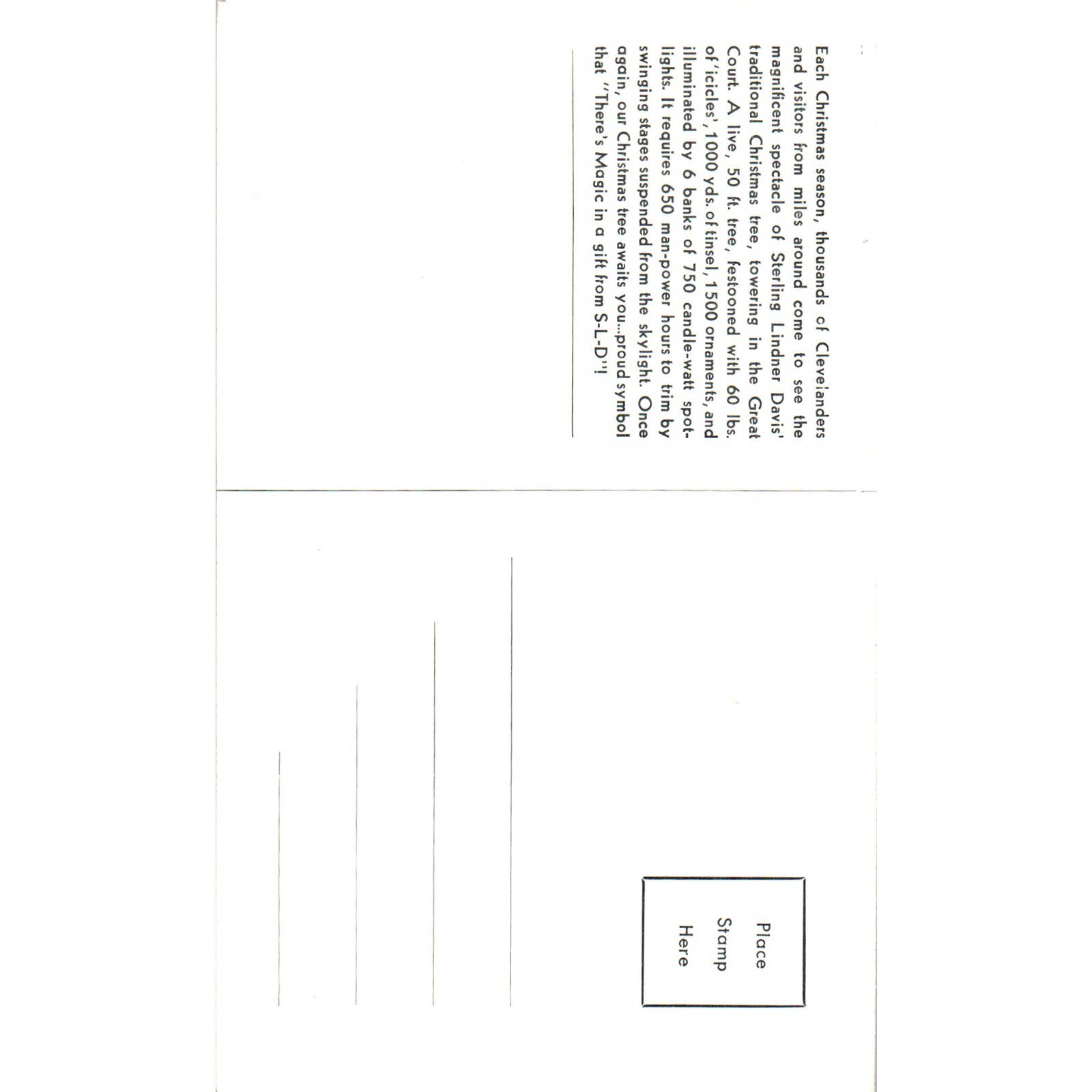 Vintage Postcard Christmas at Sterling Lindner Davis Sterling Tree Cleveland TD9