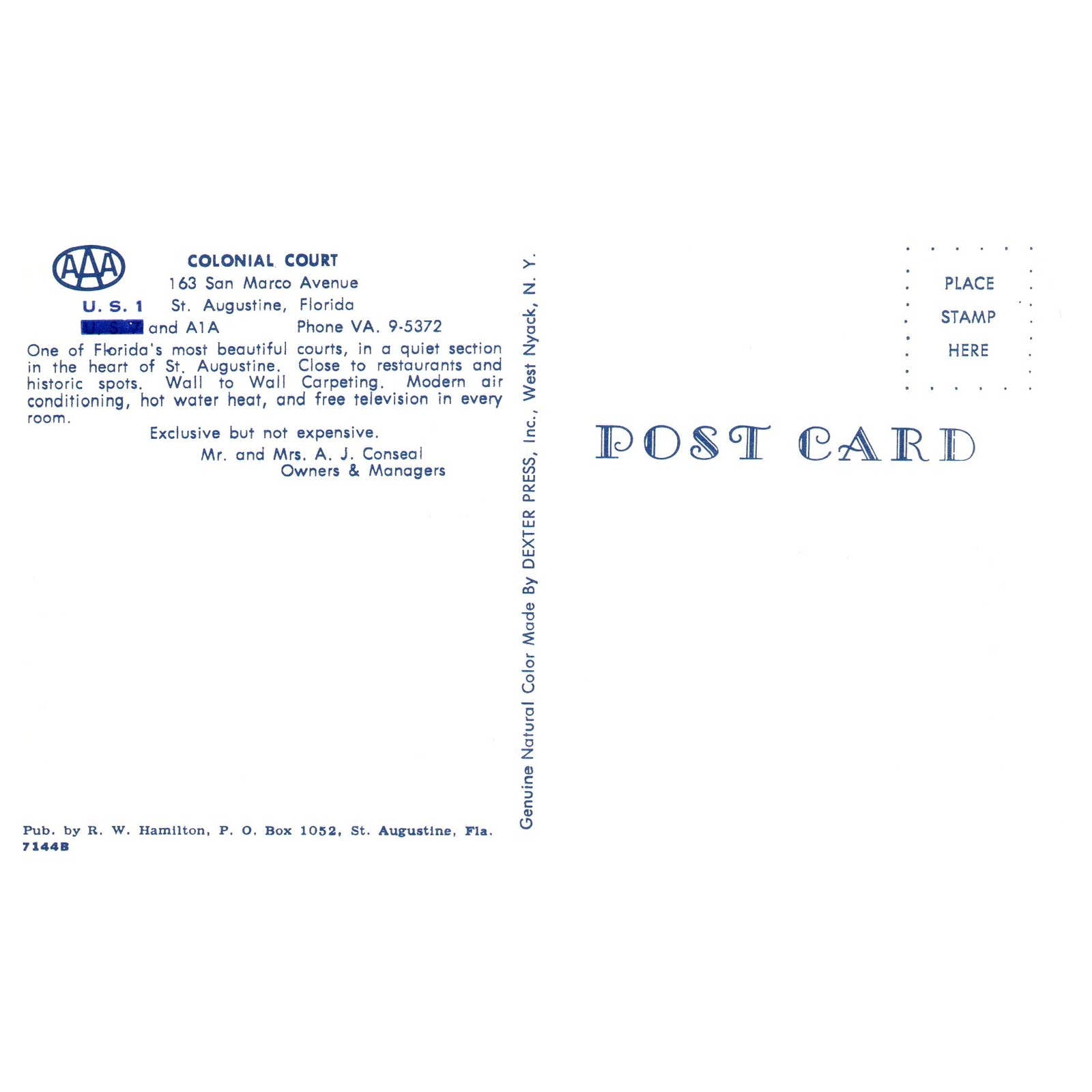 Vintage Postcard - Colonial Court St. Augustine Florida AD9