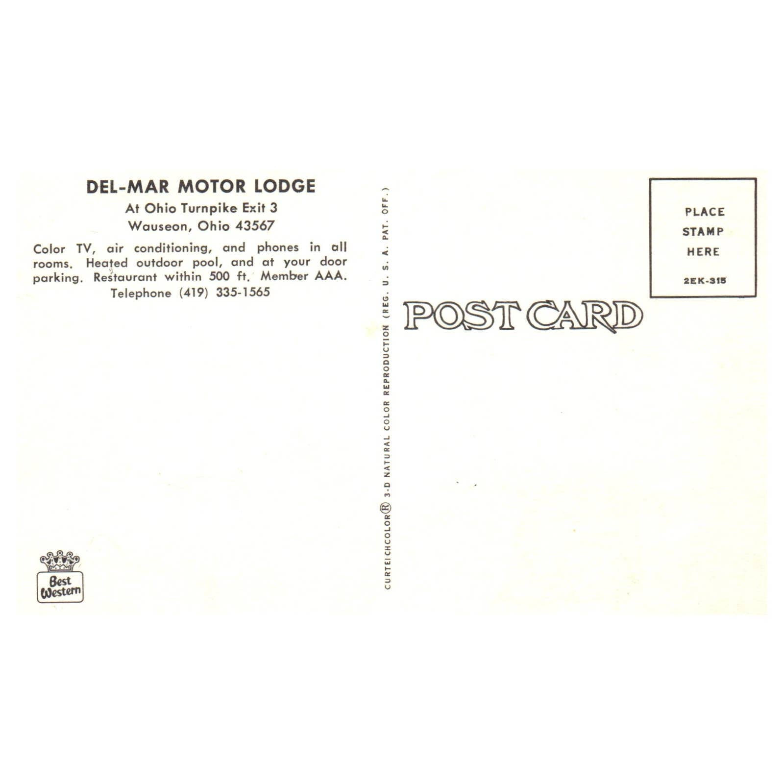 Vintage Postcard - Del-Mar Motor Lodge Interior Room Wauseon OH AD9