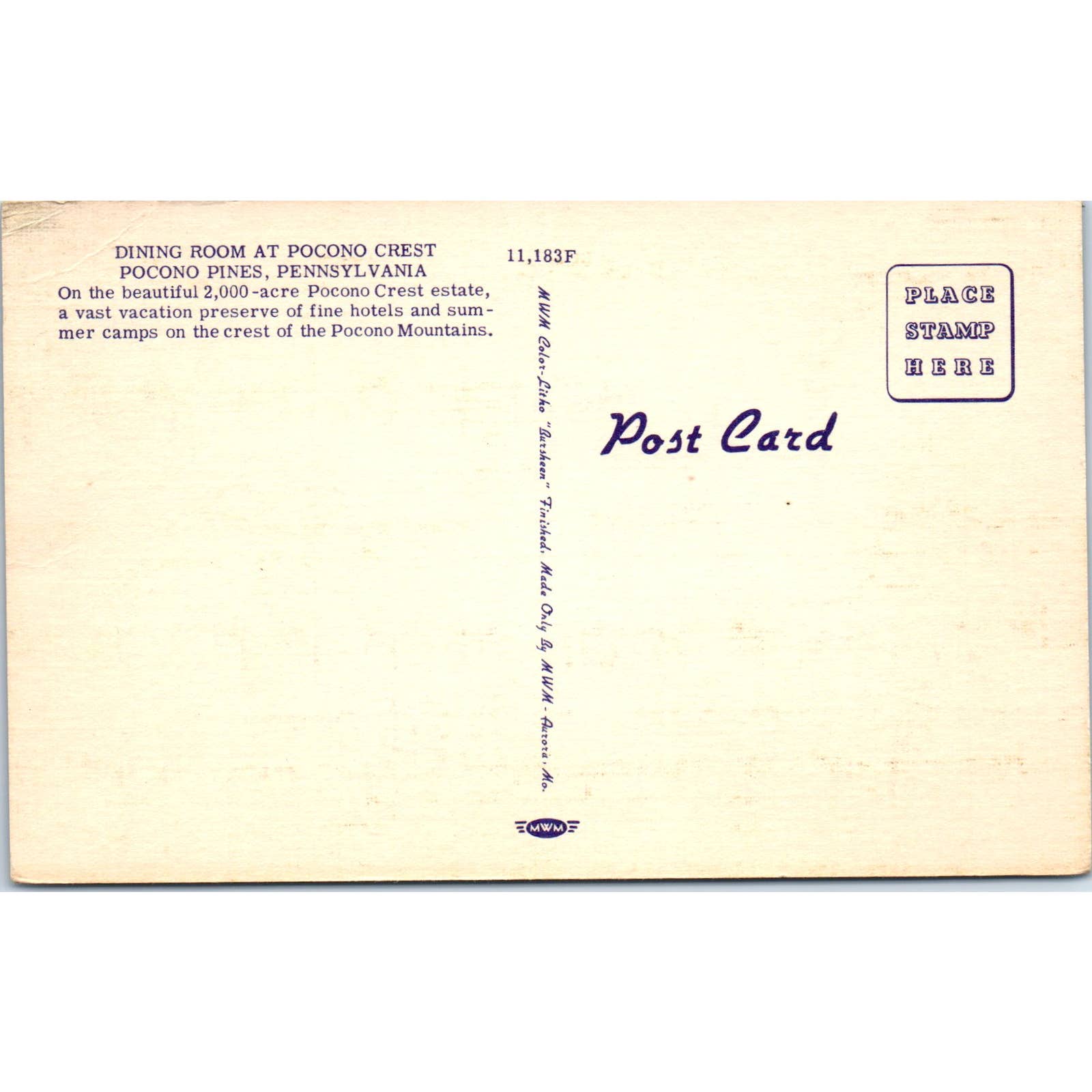 Vintage Postcard Dining Room at Pocono Crest, Pocono Pines PA TD8-P2