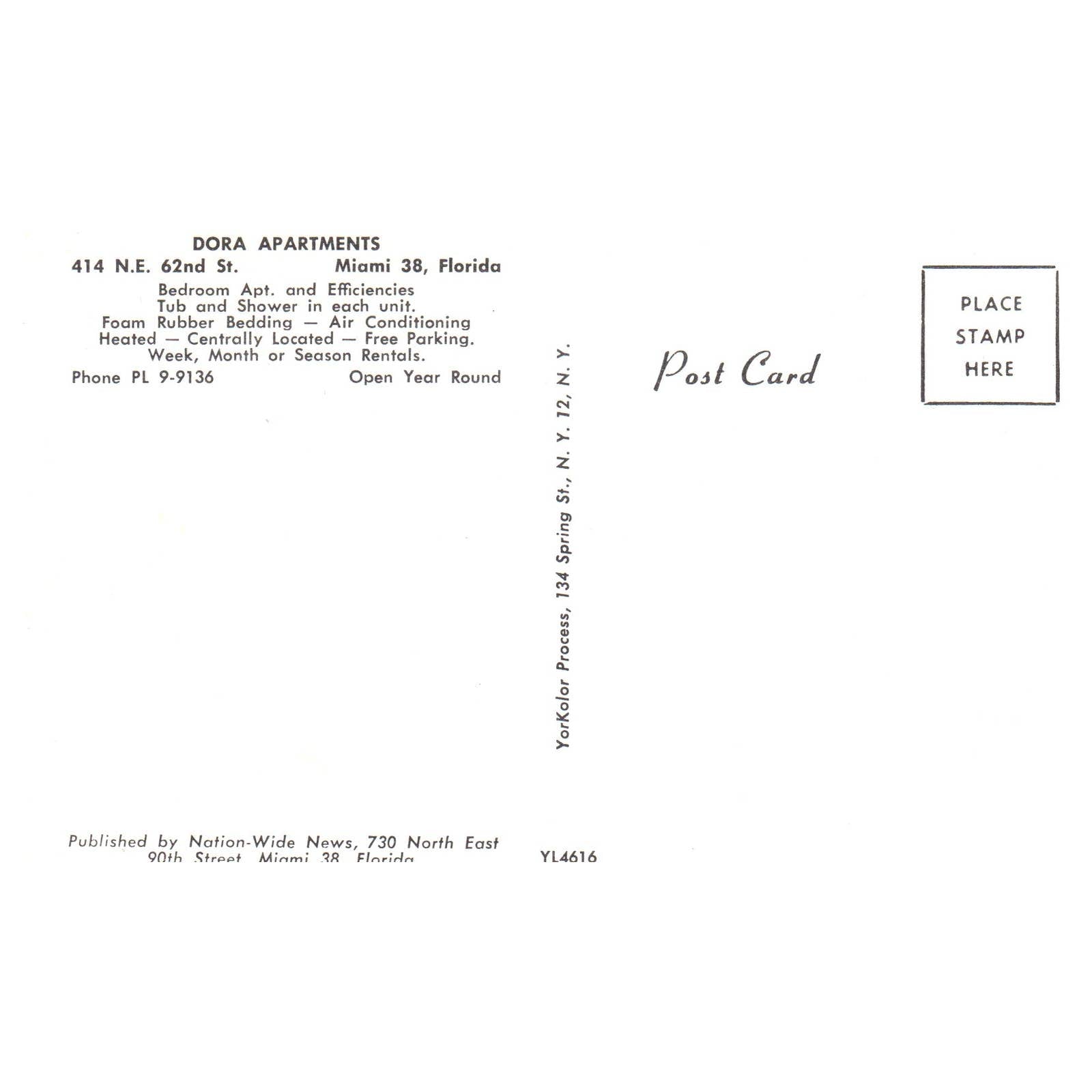 Vintage Postcard - Dora Apartments Miami Florida 1960s TJ7-1