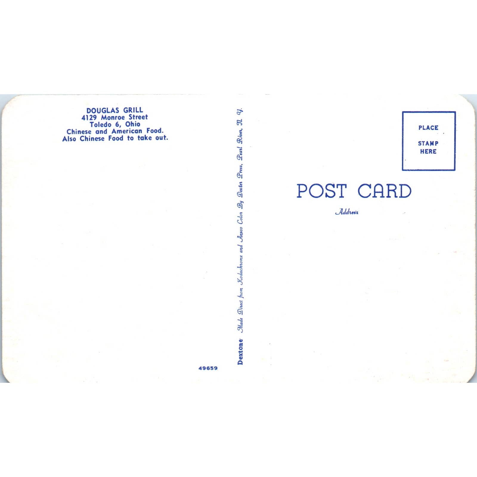 Vintage Postcard Douglas Grill Interior Monroe Street Toledo Ohio TD9