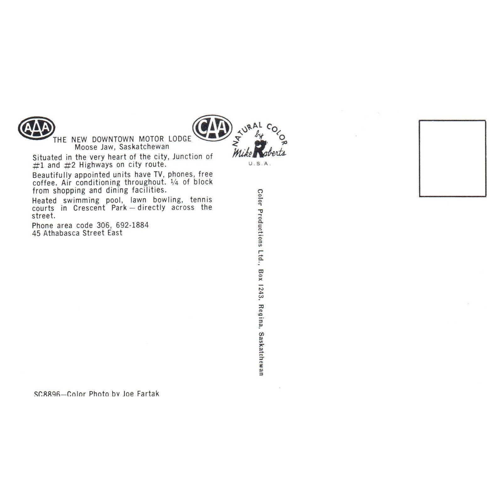 Vintage Postcard - Downtown Motor Lodge Moose Jaw Saskatchewan Canada TJ6-1