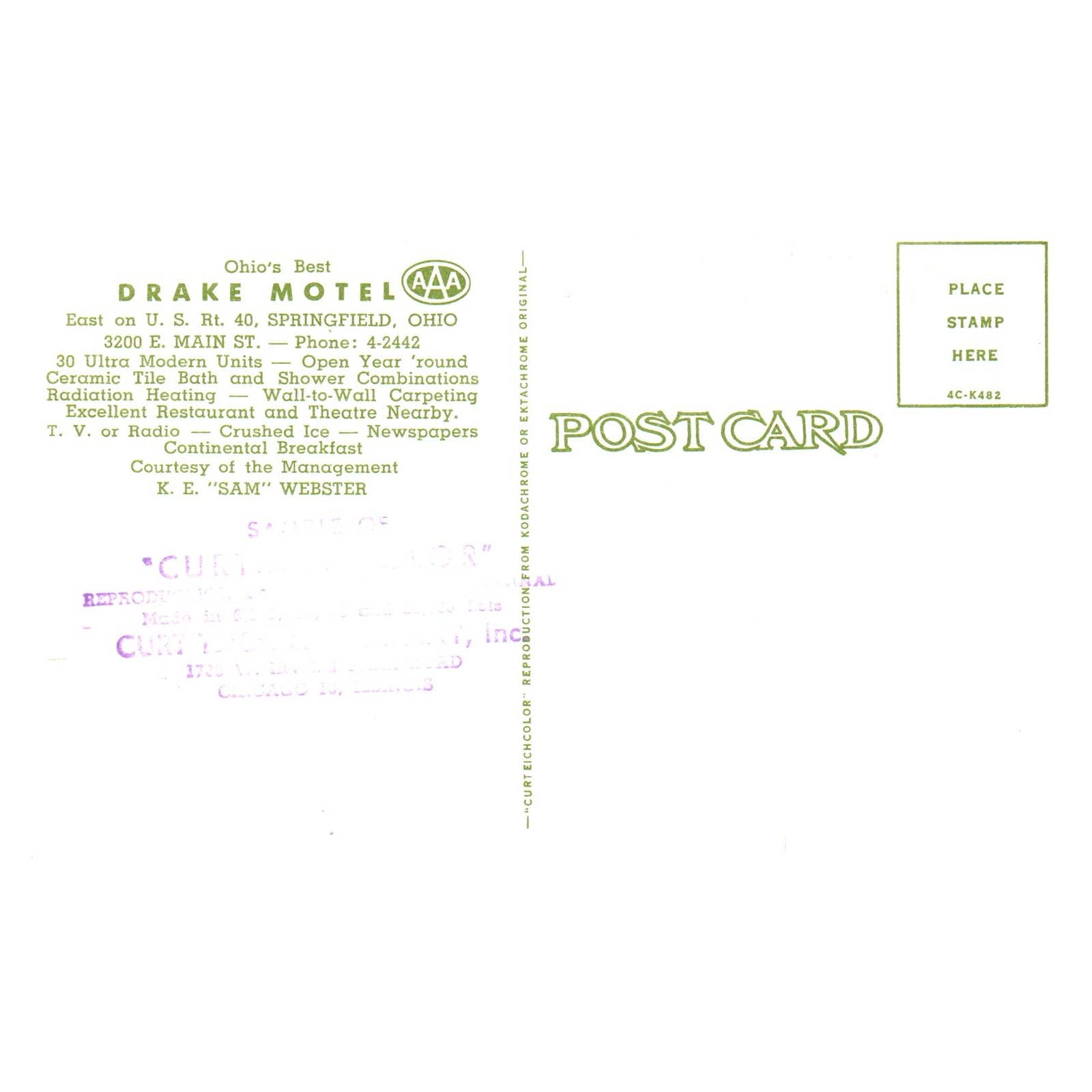 Vintage Postcard - Drake Motel Springfield Ohio K.E. Sam Webster TJ7-1