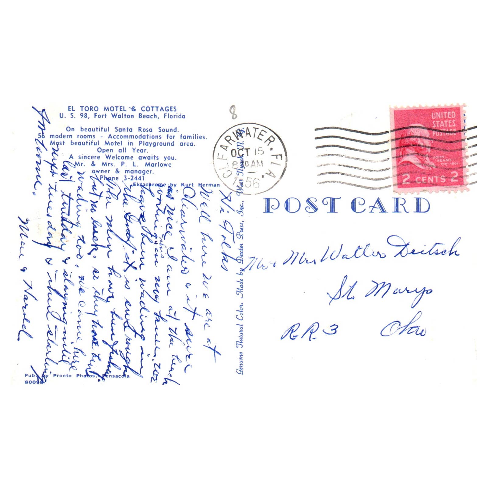 Vintage Postcard - El Toro Motel & Cottages Fort Walton Beach FL 1956 AD9