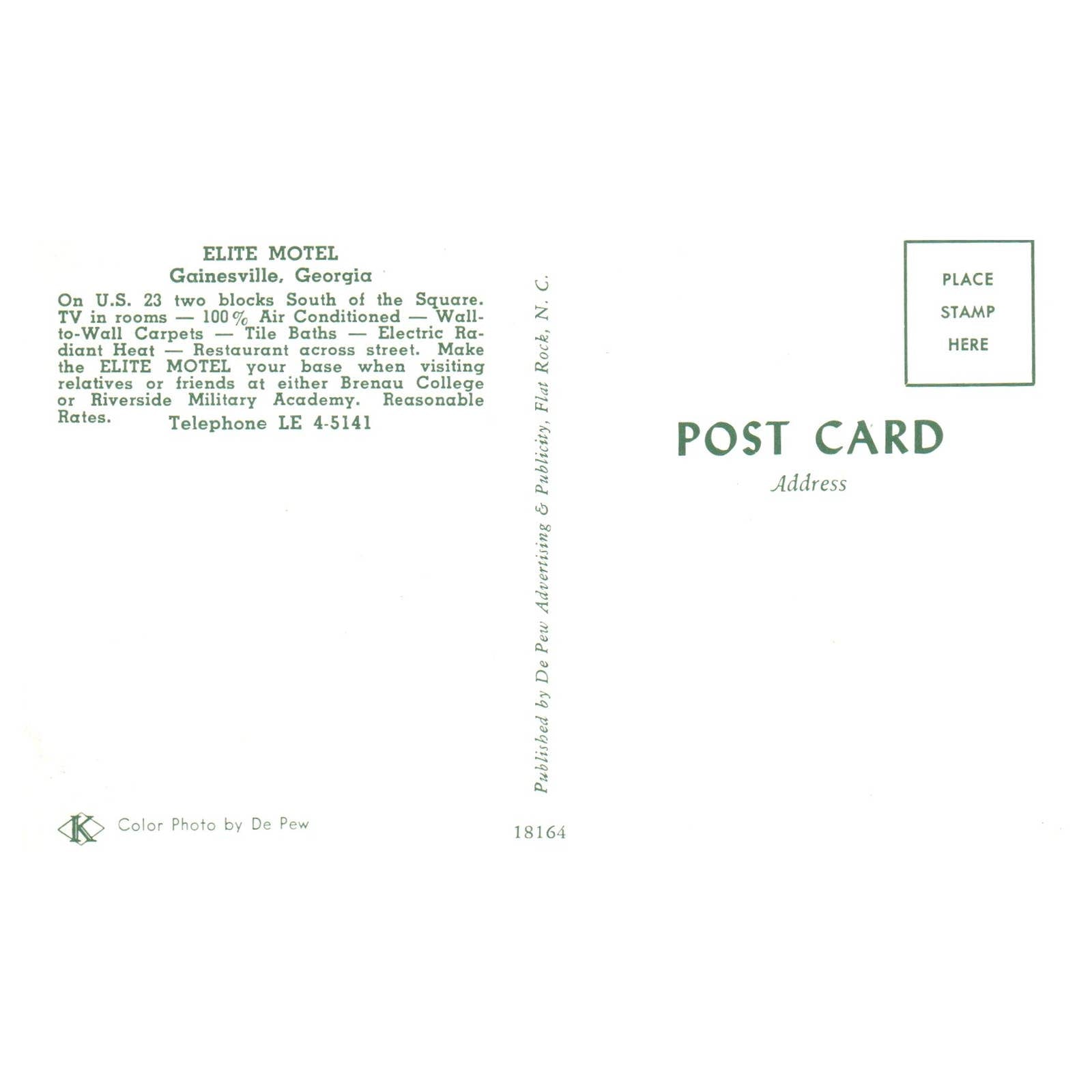 Vintage Postcard - Elite Motel Gainesville Georgia AD9