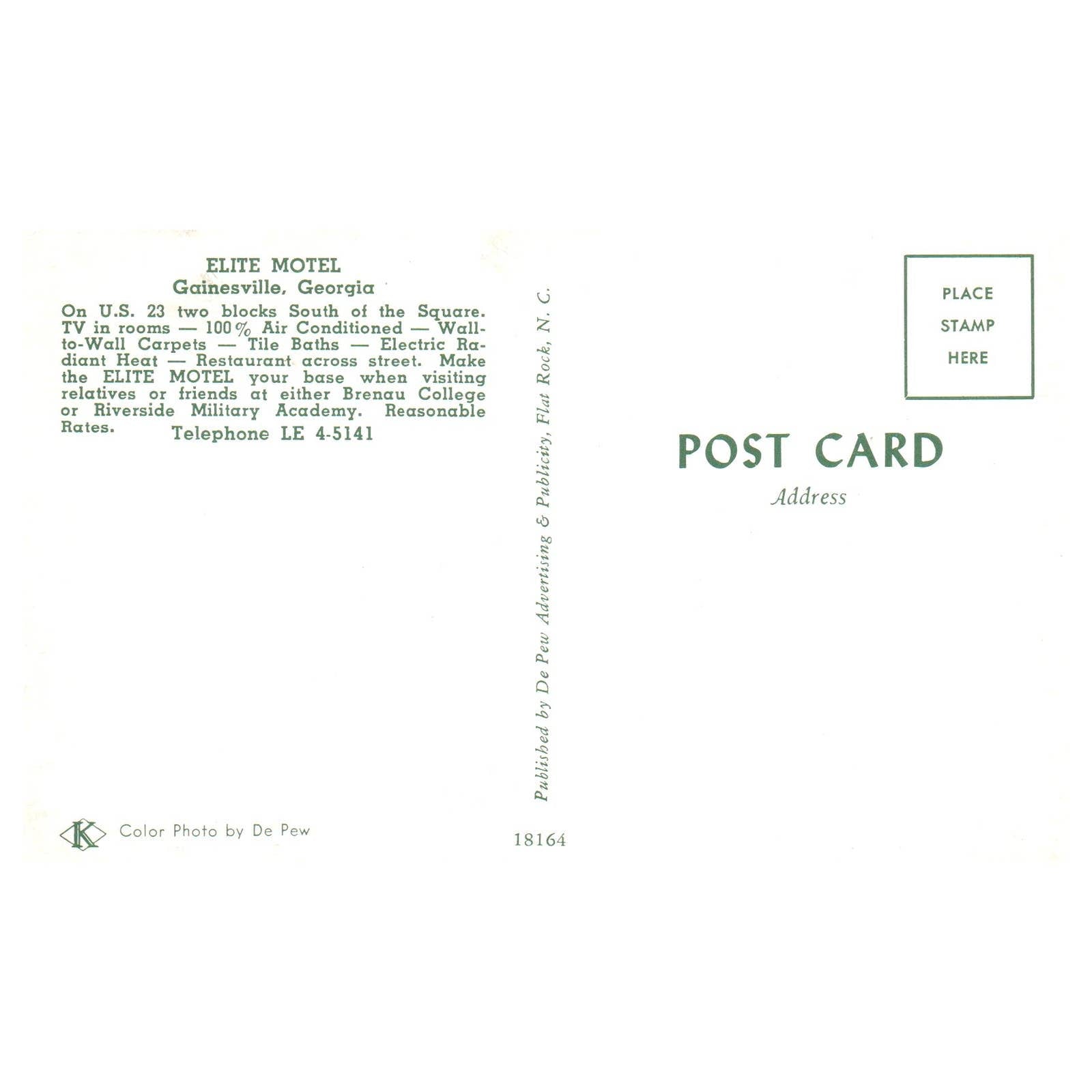 Vintage Postcard - Elite Motel US 23 Gainesville Georgia AD9