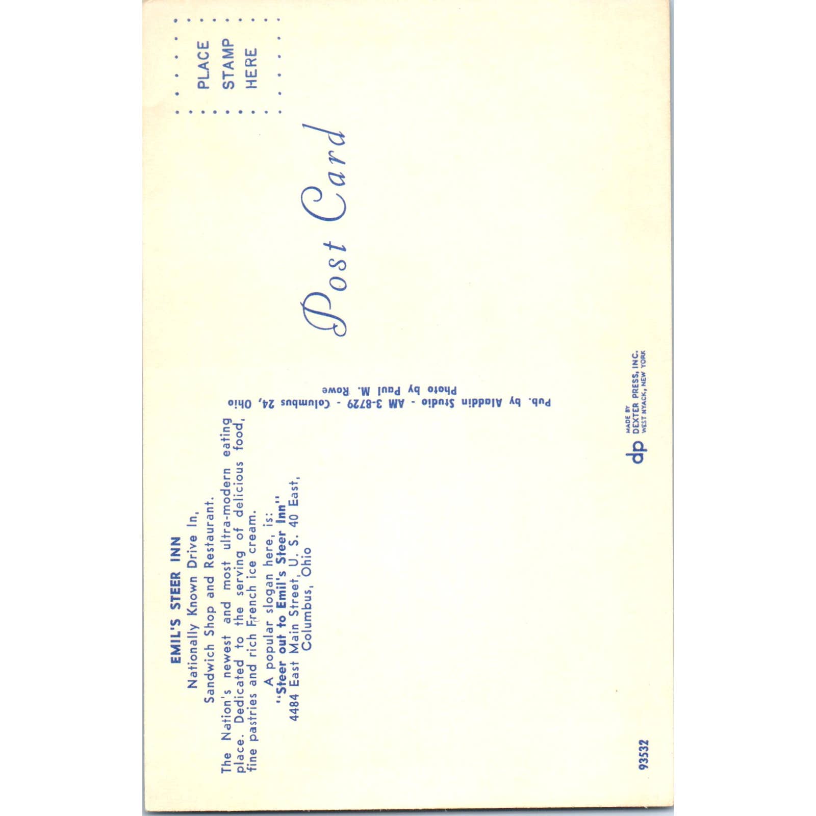 Vintage Postcard Emil's Steer Inn Columbus Ohio TD9