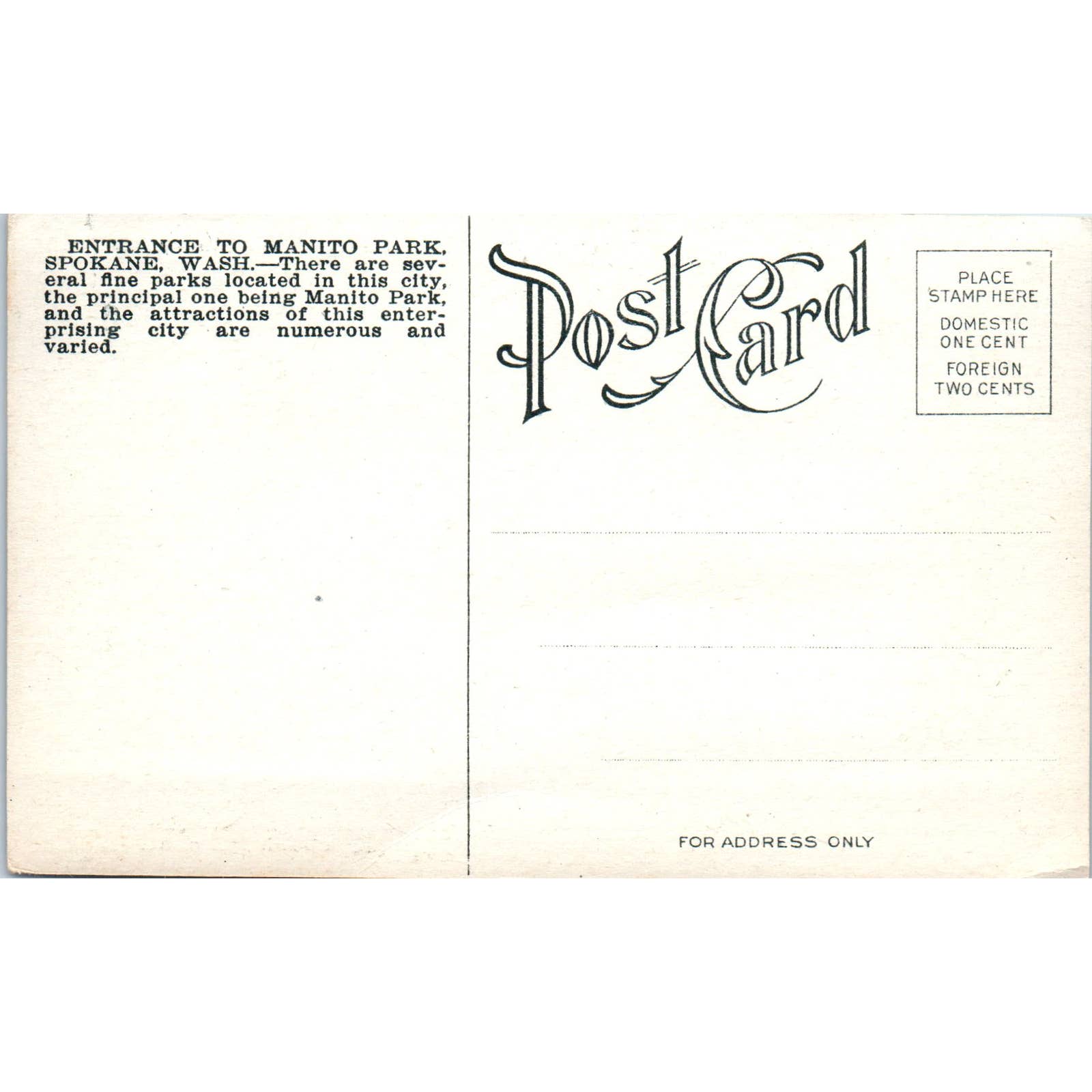 Vintage Postcard Entrance to Manito Park Spokane Washington TD9-W2