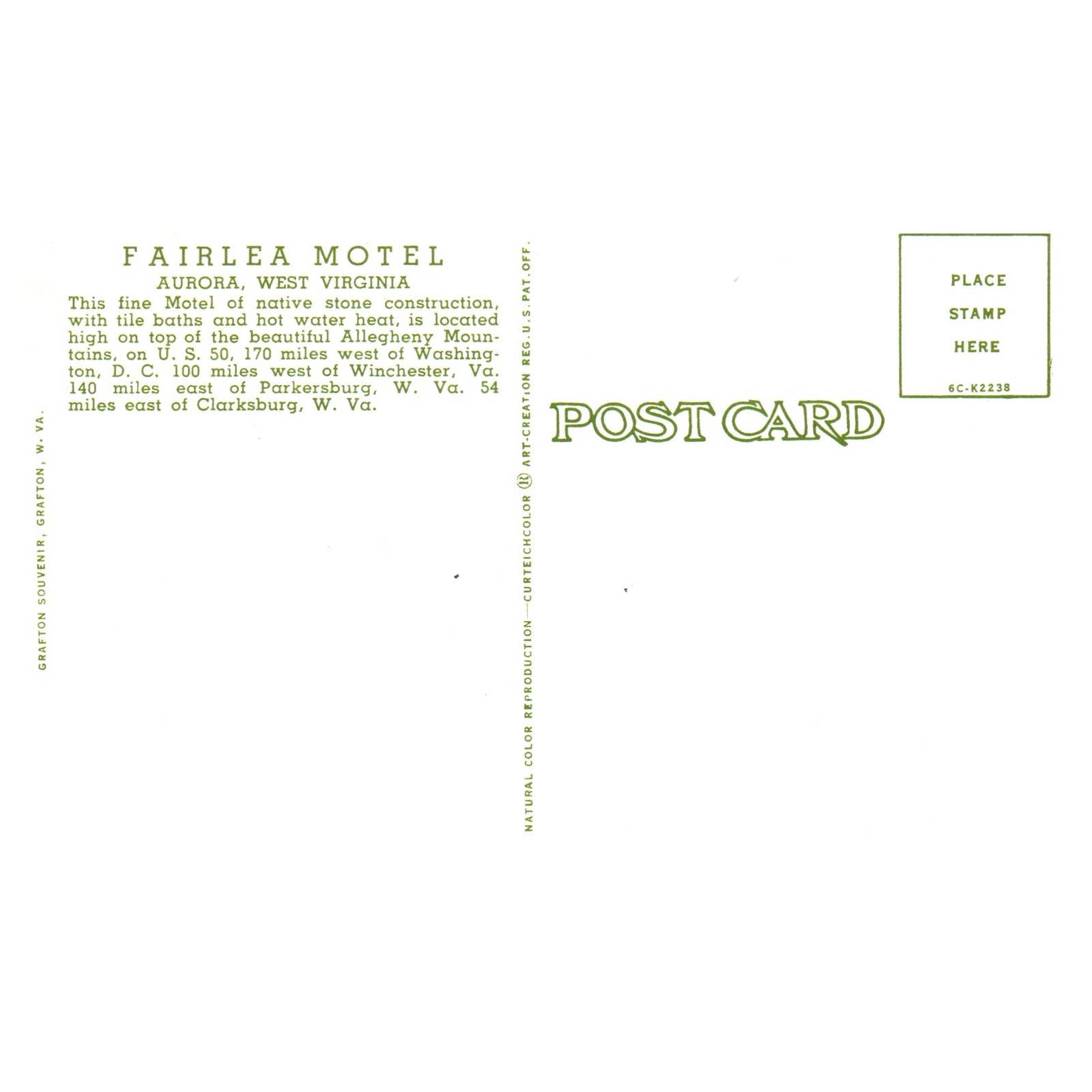 Vintage Postcard - Fairlea Mottel Aurora West Virginia TJ6-1