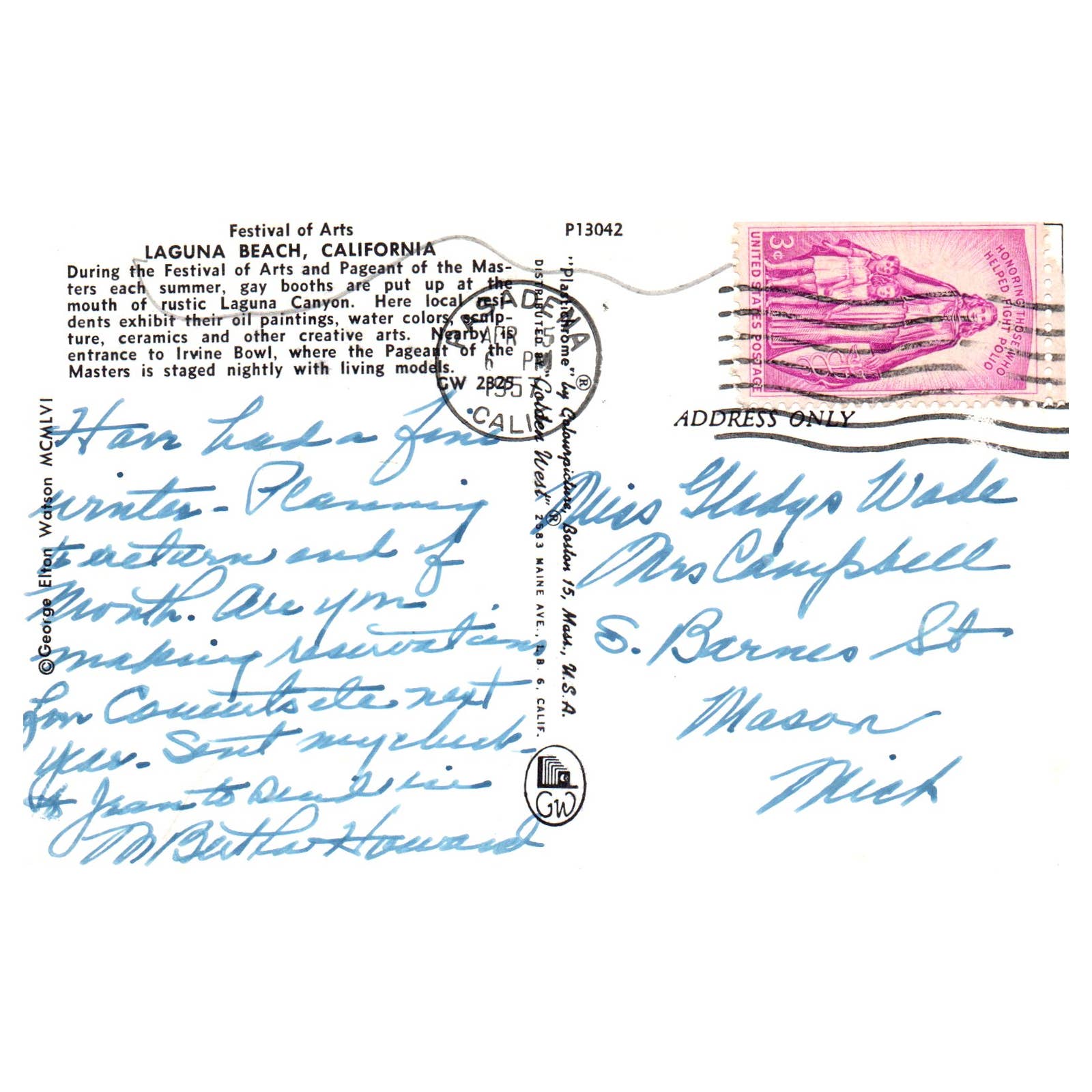 Vintage Postcard - Festival of Arts Laguna Beach California 1957 AD9