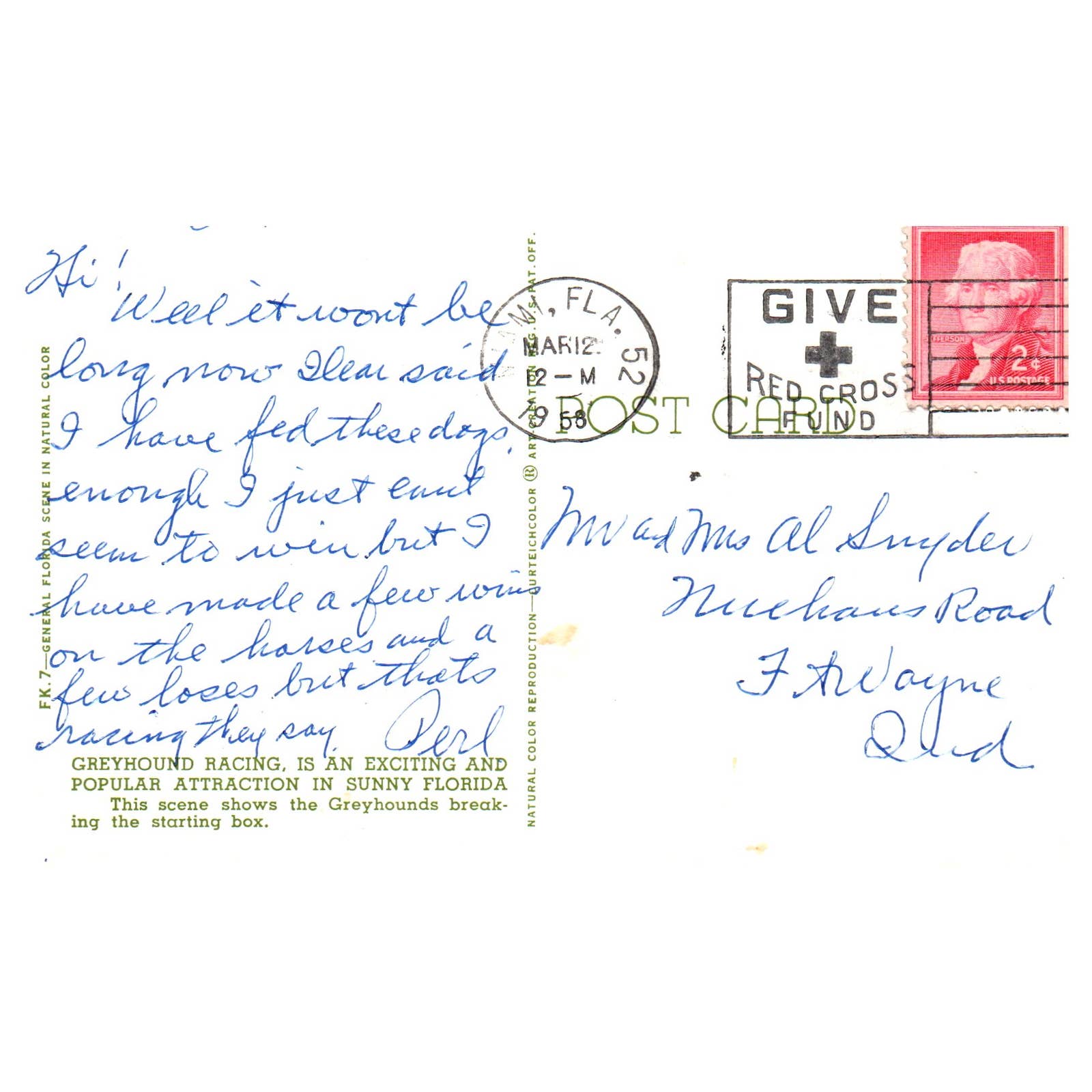 Vintage Postcard - Greyhound Racing Miami Florida 1958 AD9