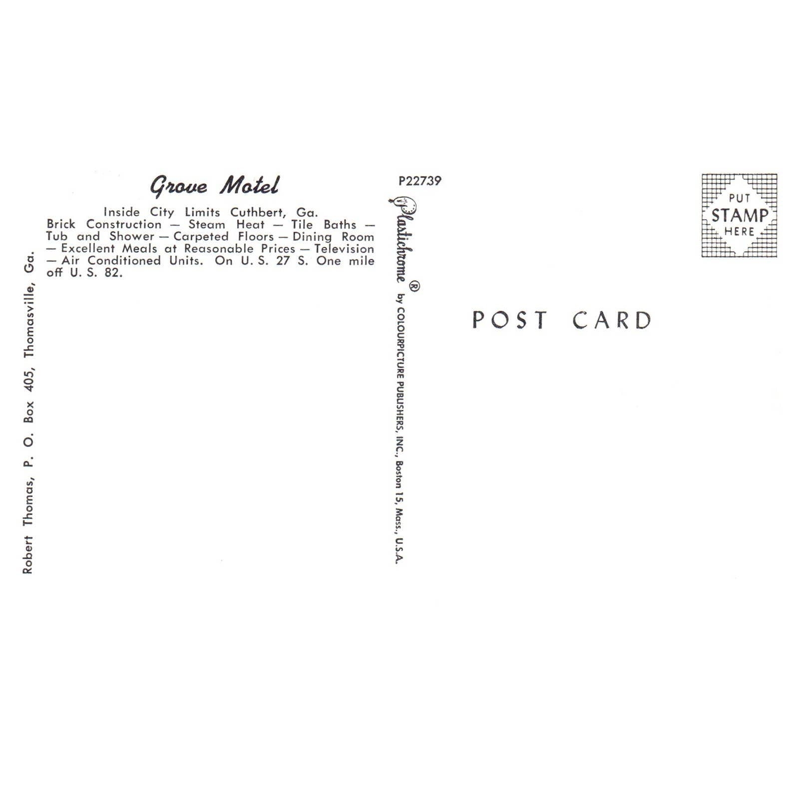 Vintage Postcard - Grove Motel Cuthbert Georgia AD9