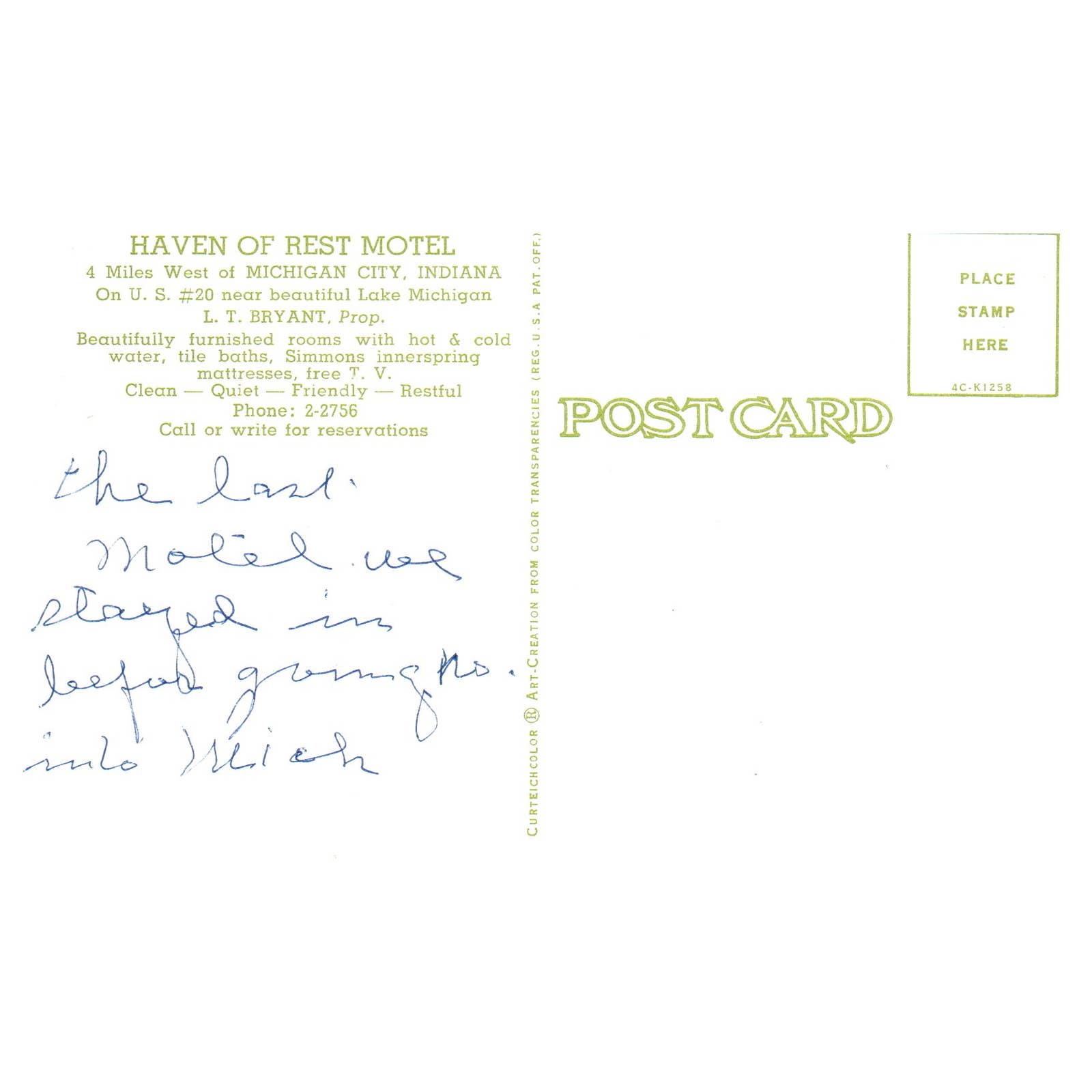 Vintage Postcard - Haven of Rest Motel Michigan City Indiana AD9