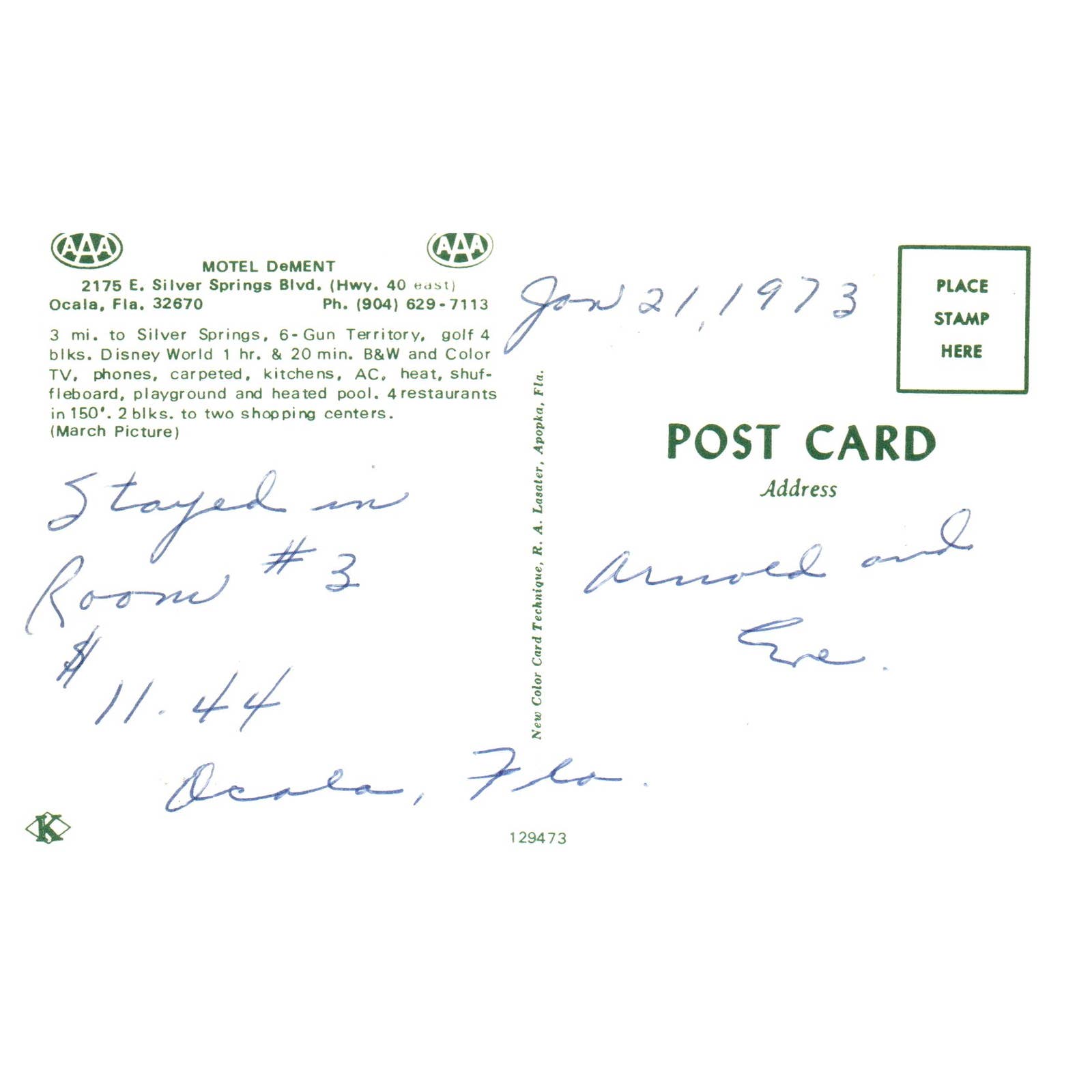 Vintage Postcard - Hotel DeMent Ocala Florida 1973 AD9