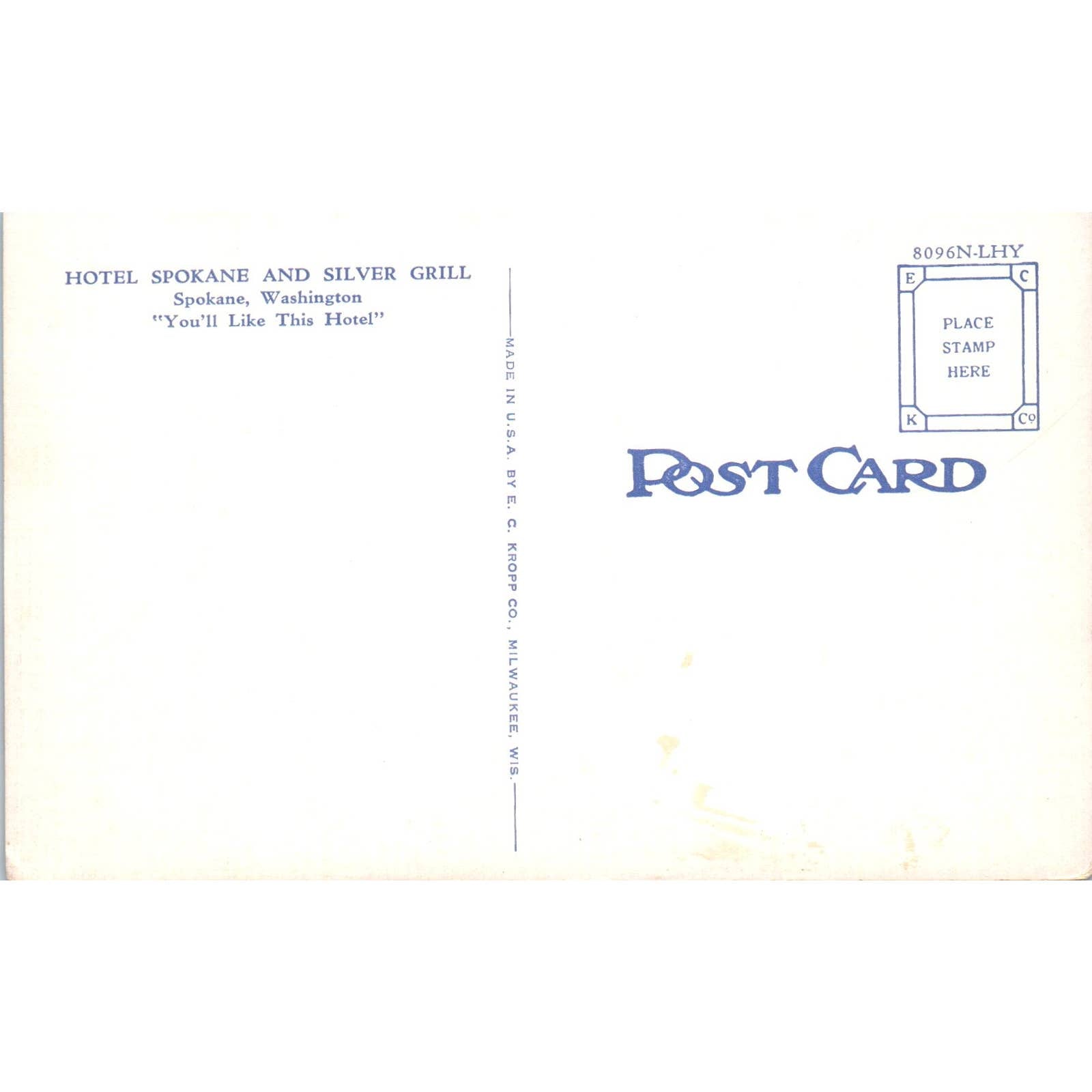 Vintage Postcard Hotel Spokane, Spokane Washington TD9-W2
