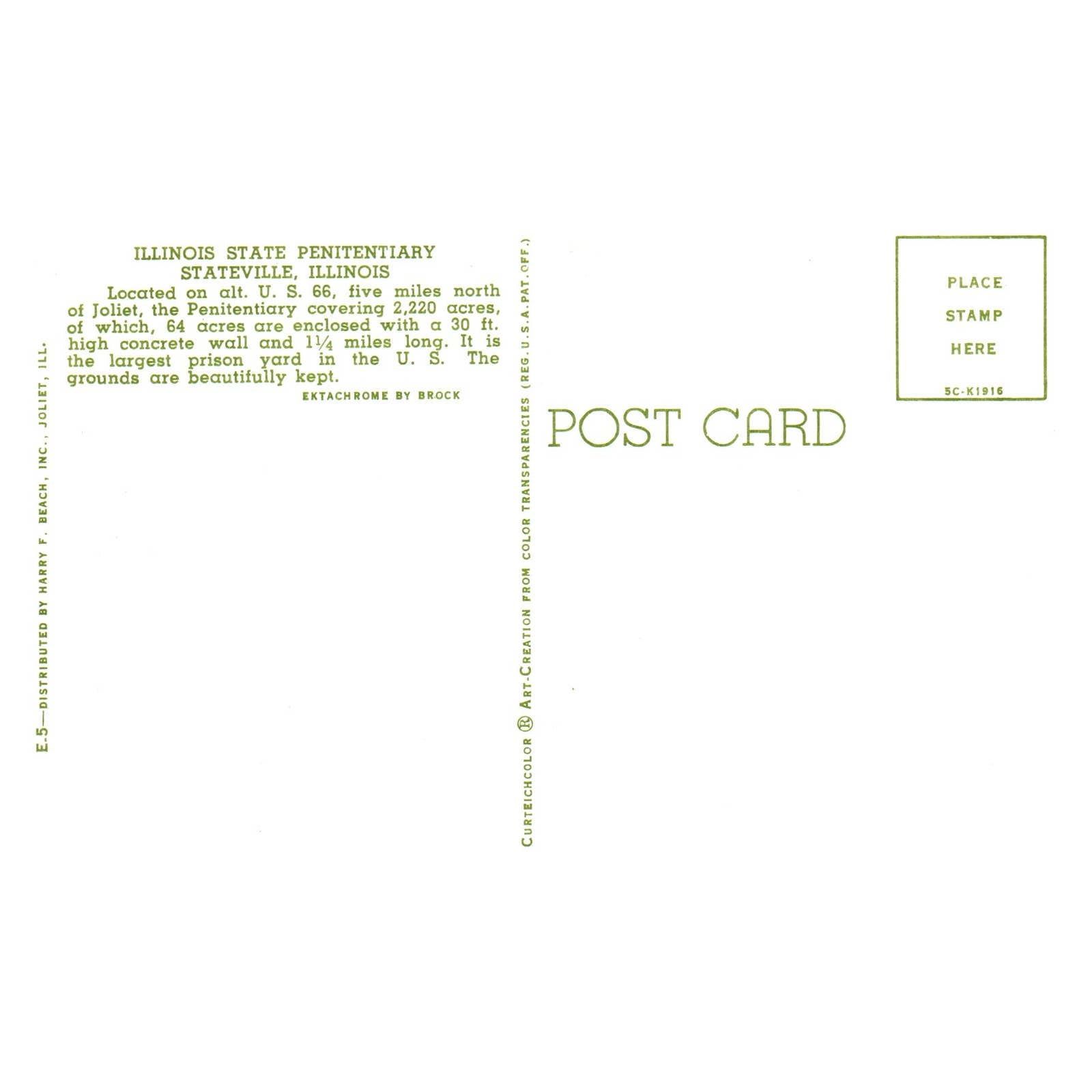 Vintage Postcard - Illinois State Penitentiary Stateville Illinois TJ6-1