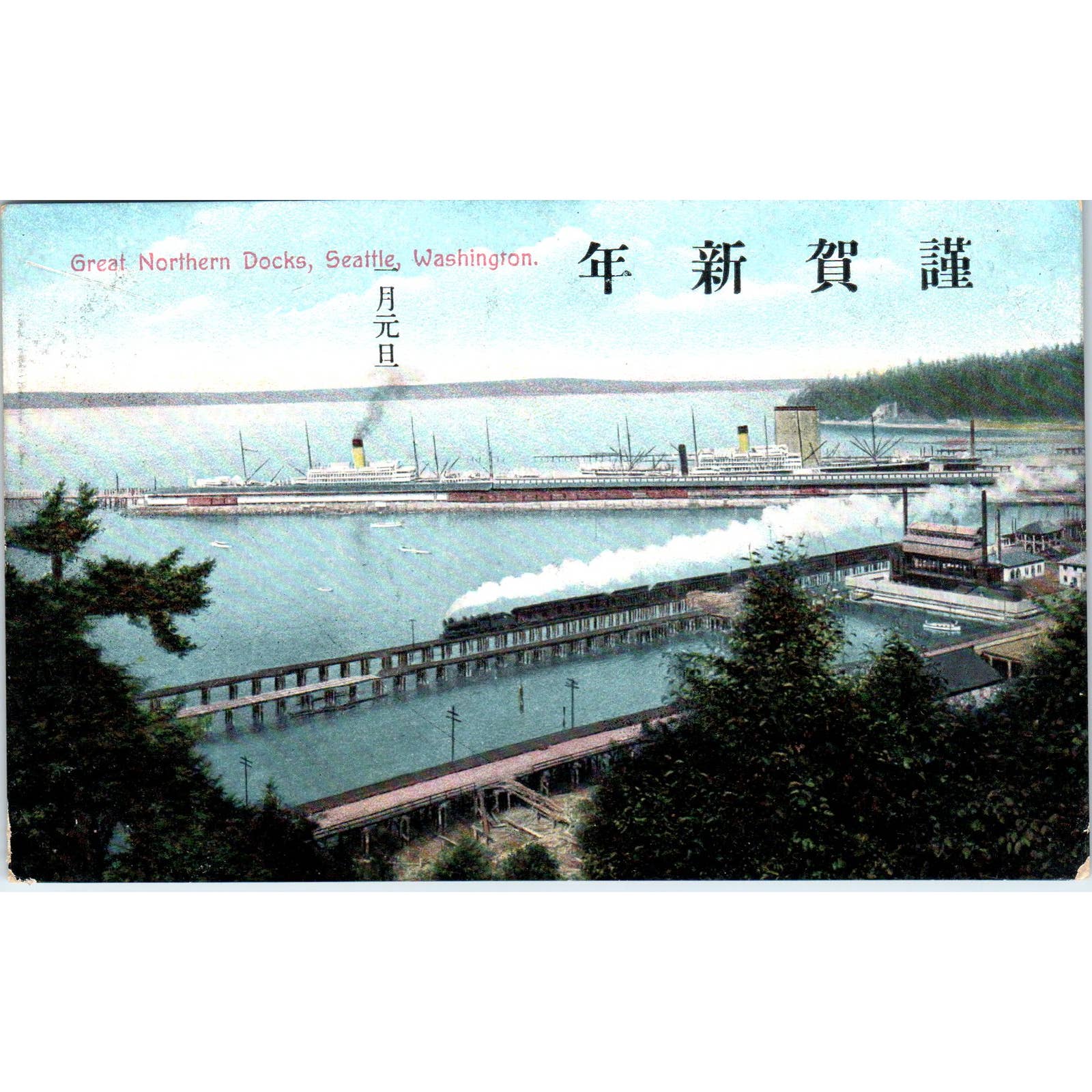 Vintage Postcard Japanese Great Northern Docks Seattle Washington TD9-W2