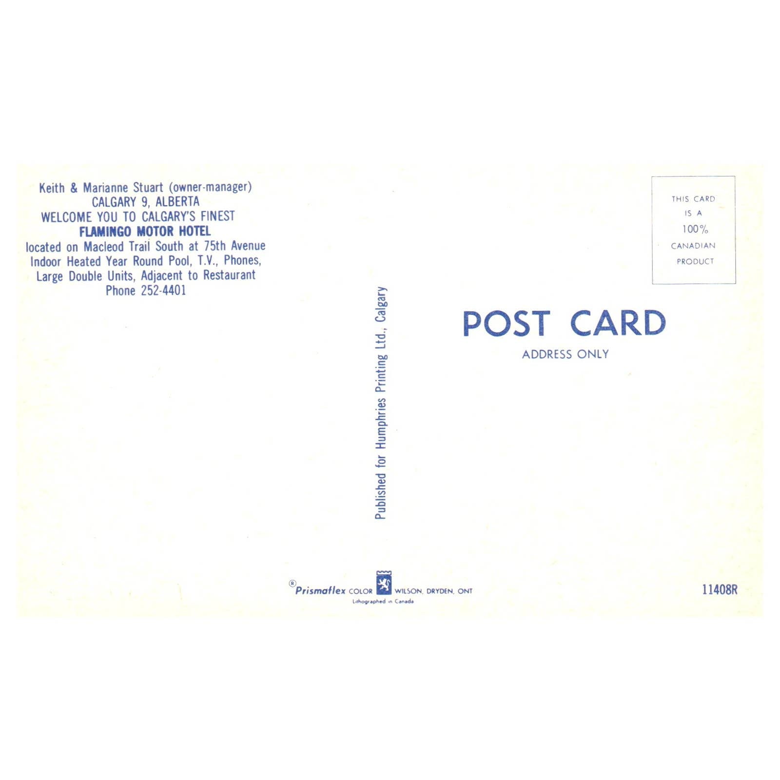Vintage Postcard - Keith & Marianne Stuart Flamingo Motor Hotel Calgary TJ7-1