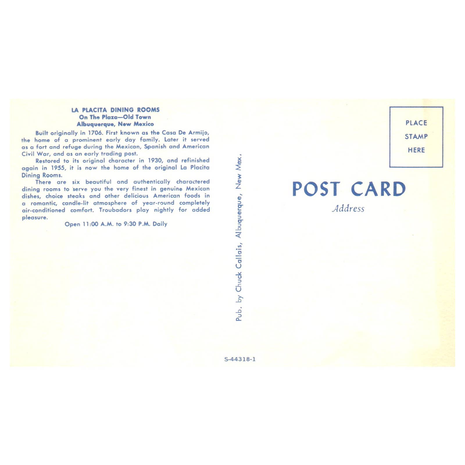 Vintage Postcard - La Placita Dining Rooms Albuquerque New Mexico TJ6-1