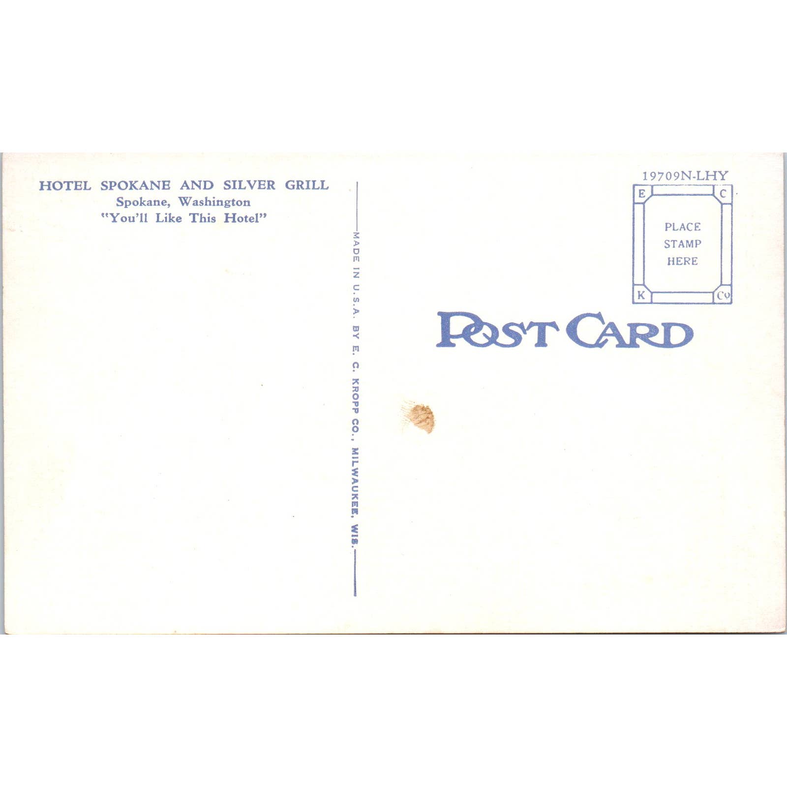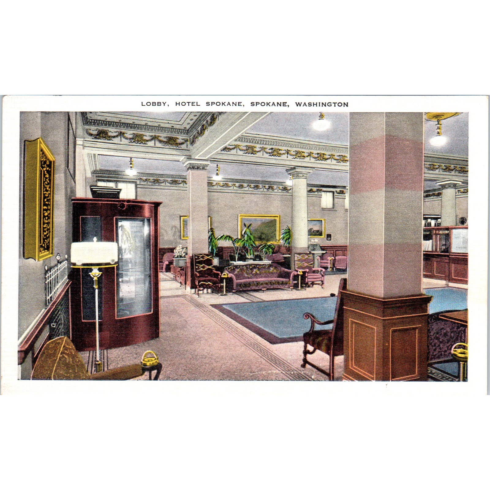 Vintage Postcard Lobby, Hotel Spokane, Spokane Washington TD9-W2