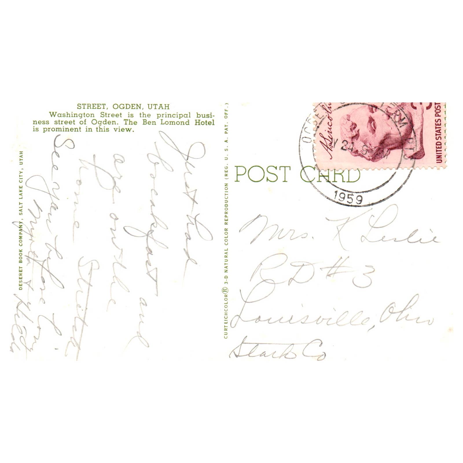 Vintage Postcard - Looking South on Washington Street Ogden Utah 1959 AD9