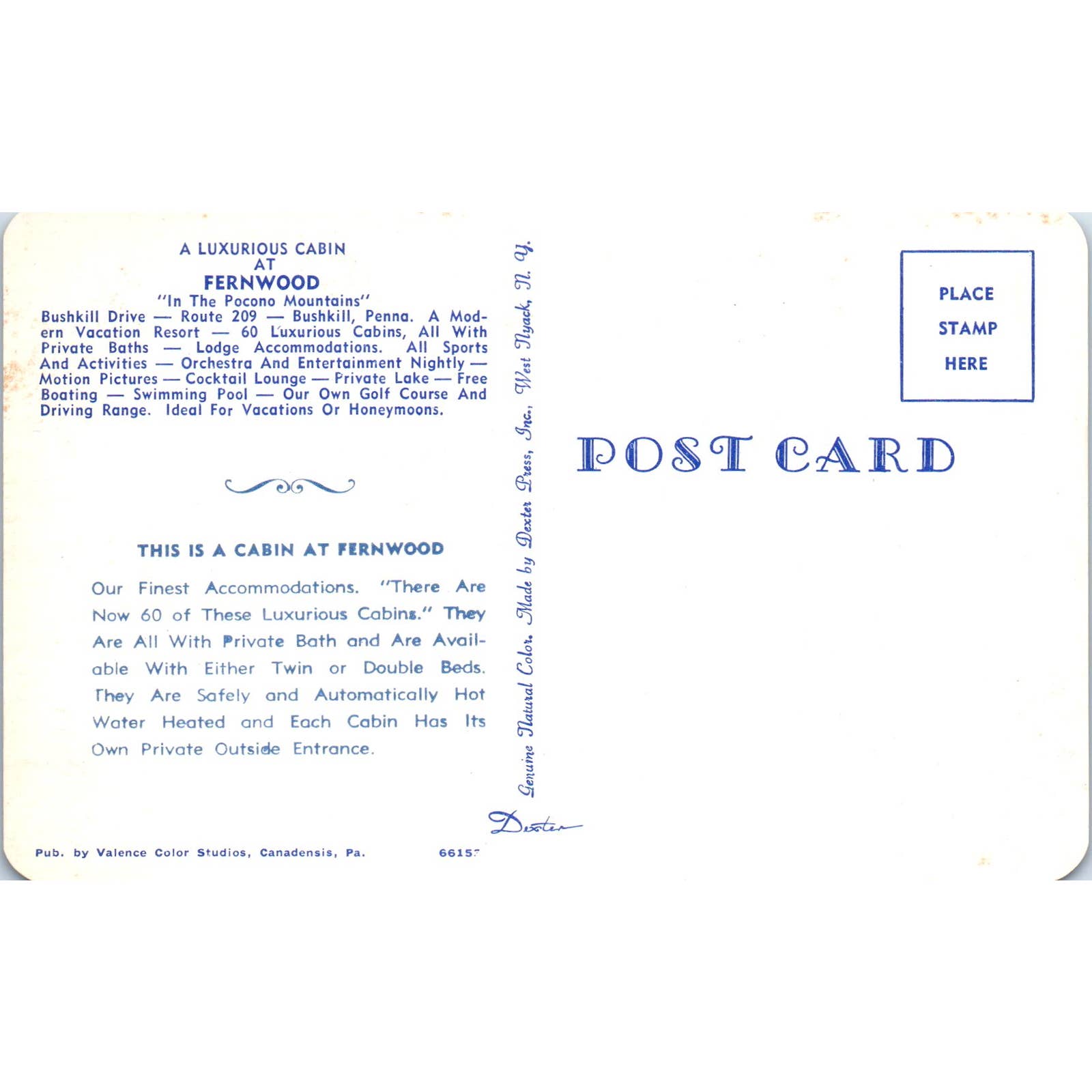 Vintage Postcard Luxurious Cabin at Fernwood Bushkill PA TD8-P2